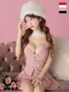 5. [ANIER./アニエル] 高級ノースリーブ セットアップ ファーチョーカー スタッズ バストカット フレアミニ サンタコスプレ