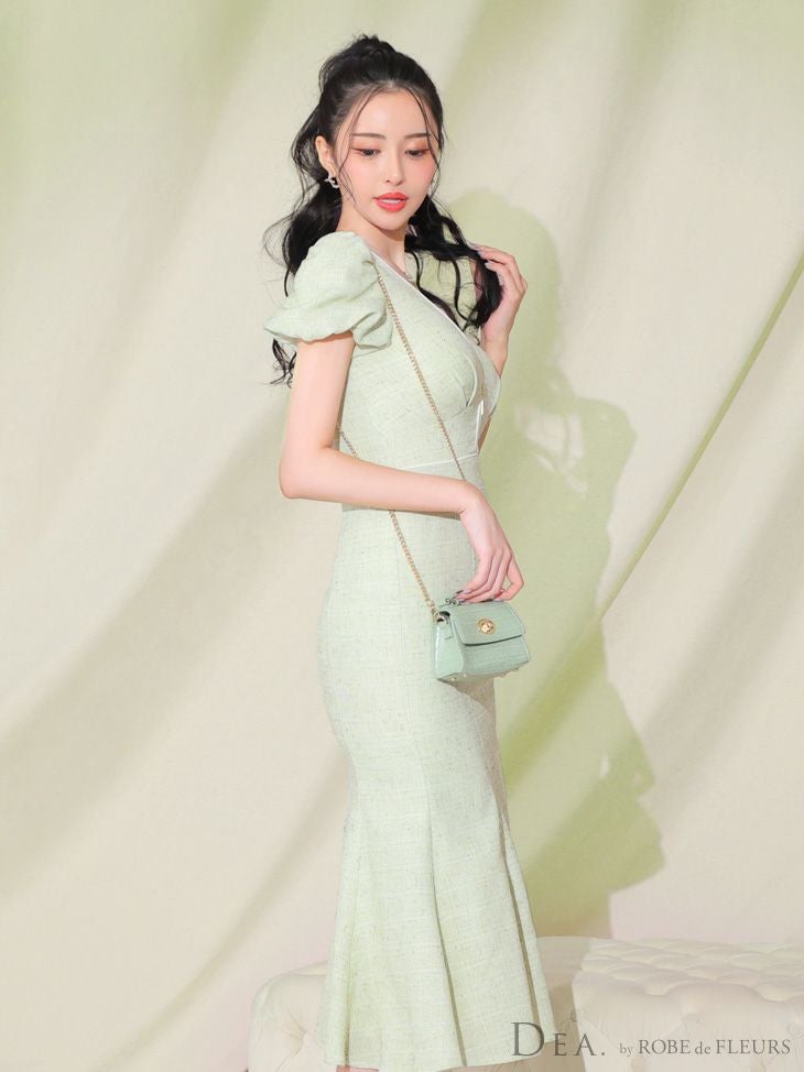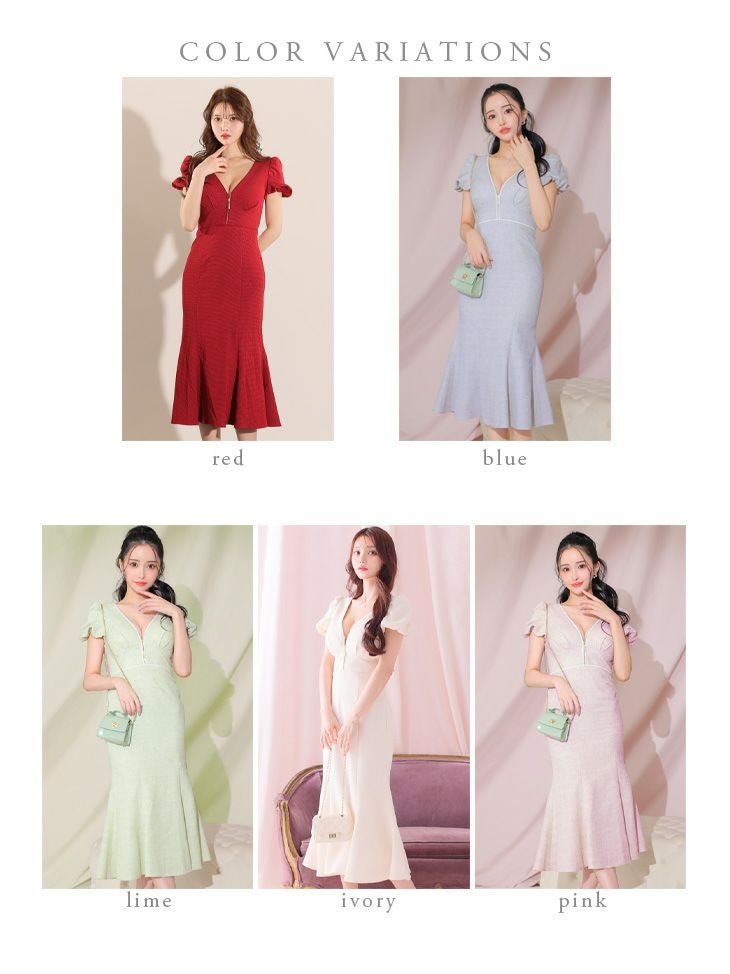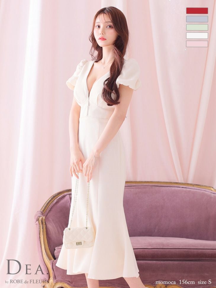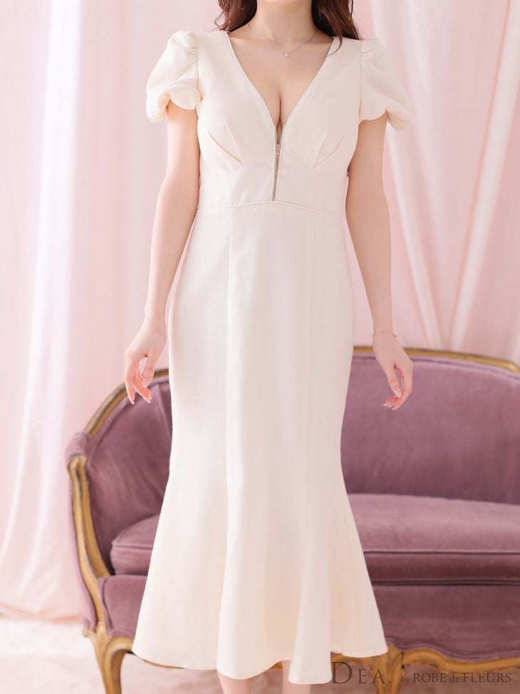 女性らしい美シルエットをメイク☆ SALE [DEA.byROBEdeFLEURS/ディアバイローブドフルール] 高級 フロントジップ 半袖 パフスリーブ ワンピース 膝丈ドレス