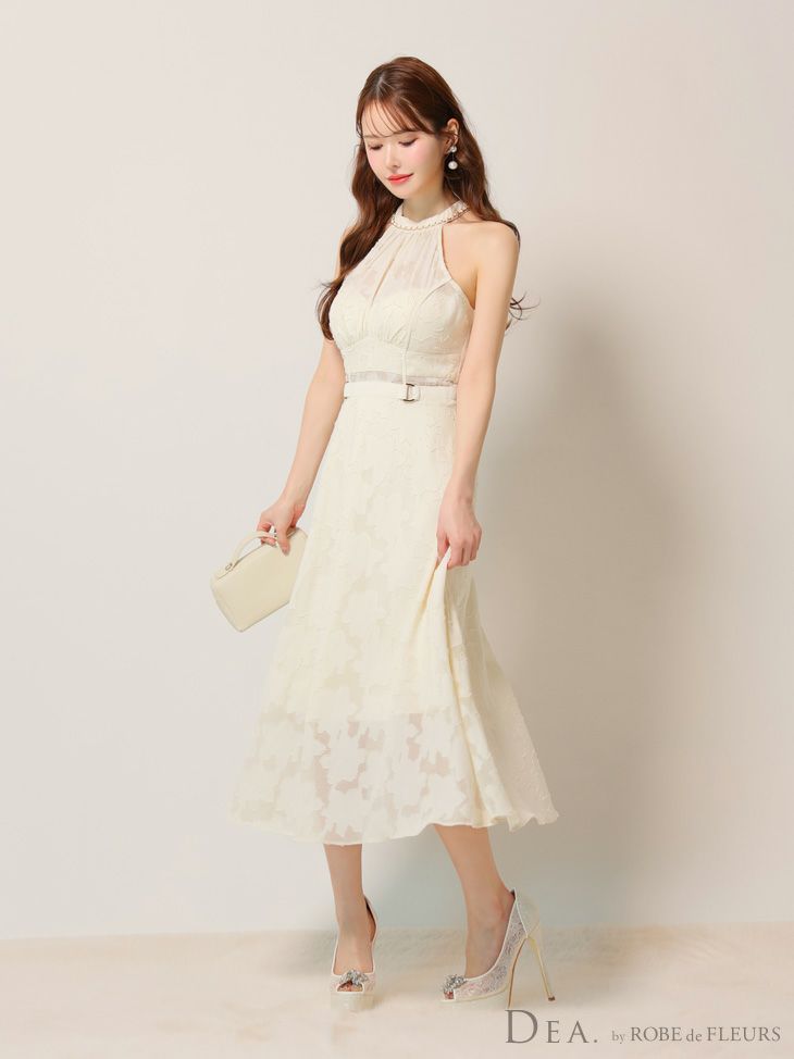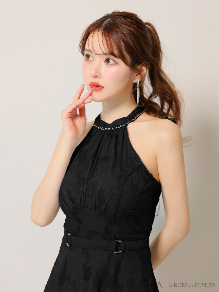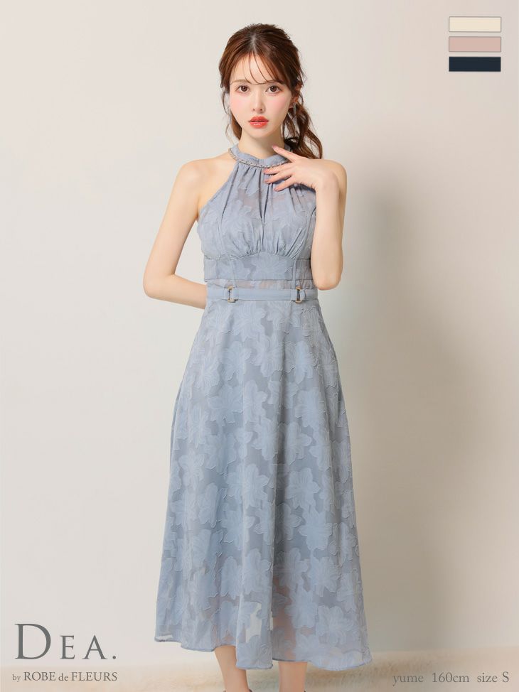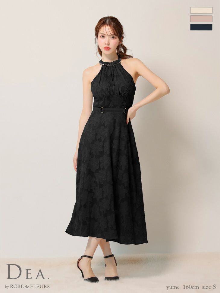 6. [DEA.byROBEdeFLEURS/ディアバイローブドフルール] 高級ホルターネックウエストベルトレースシンプルAラインロングドレス