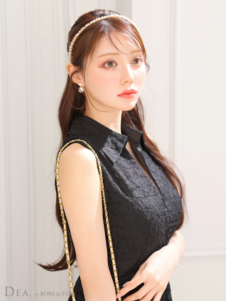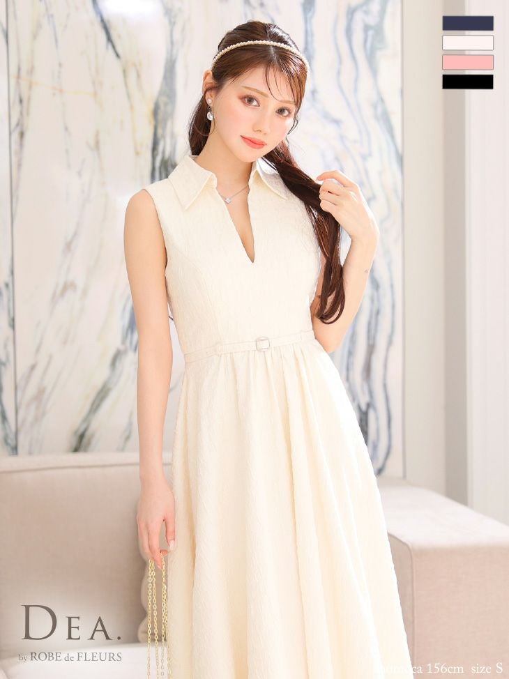 キャバドレス ワンピース  DEA.byROBEdeFLEURS ディアバイローブドフルール 高級襟デザインvネックノースリーブウエストベルトフレアロングドレス