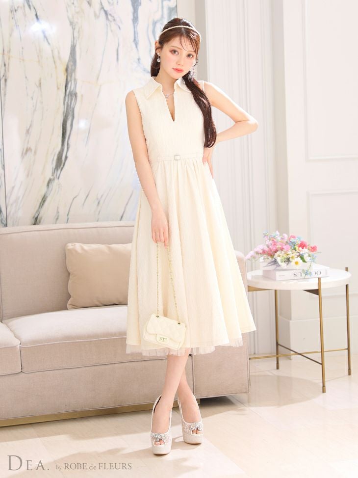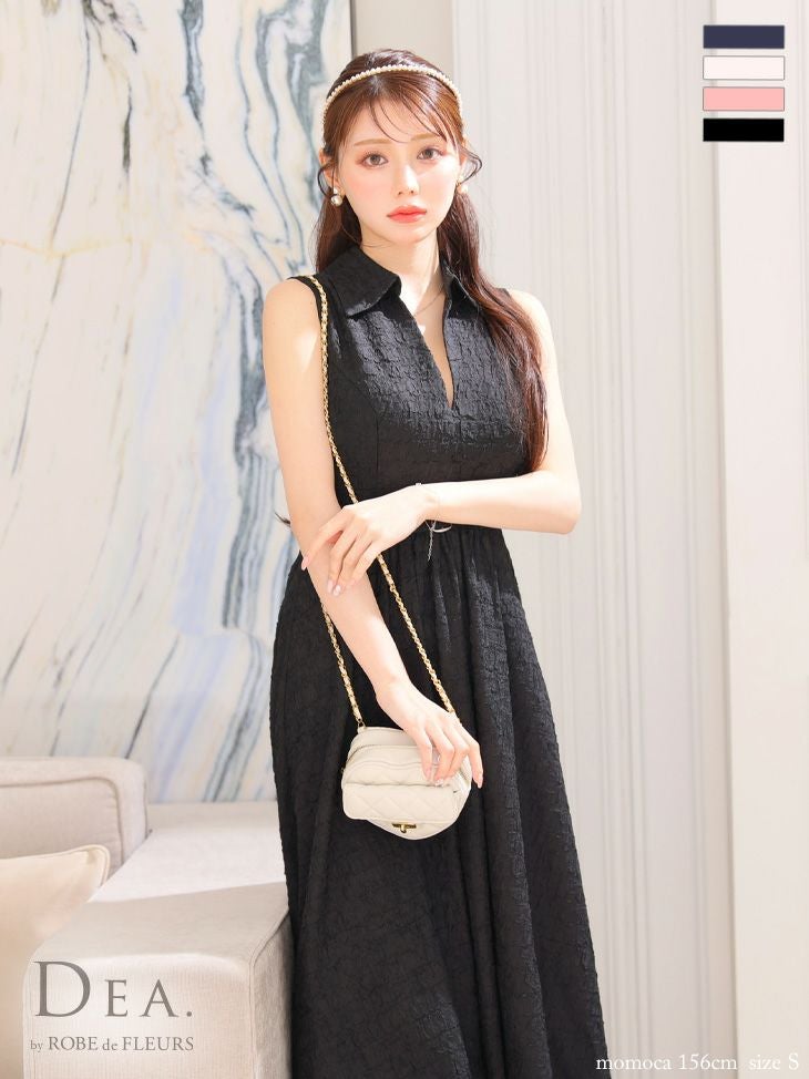 大人可愛いロングドレス☆ [DEA.byROBEdeFLEURS/ディアバイローブドフルール] 高級 襟付き vネック ノースリーブ ウエストベルト Aラインロングドレス
