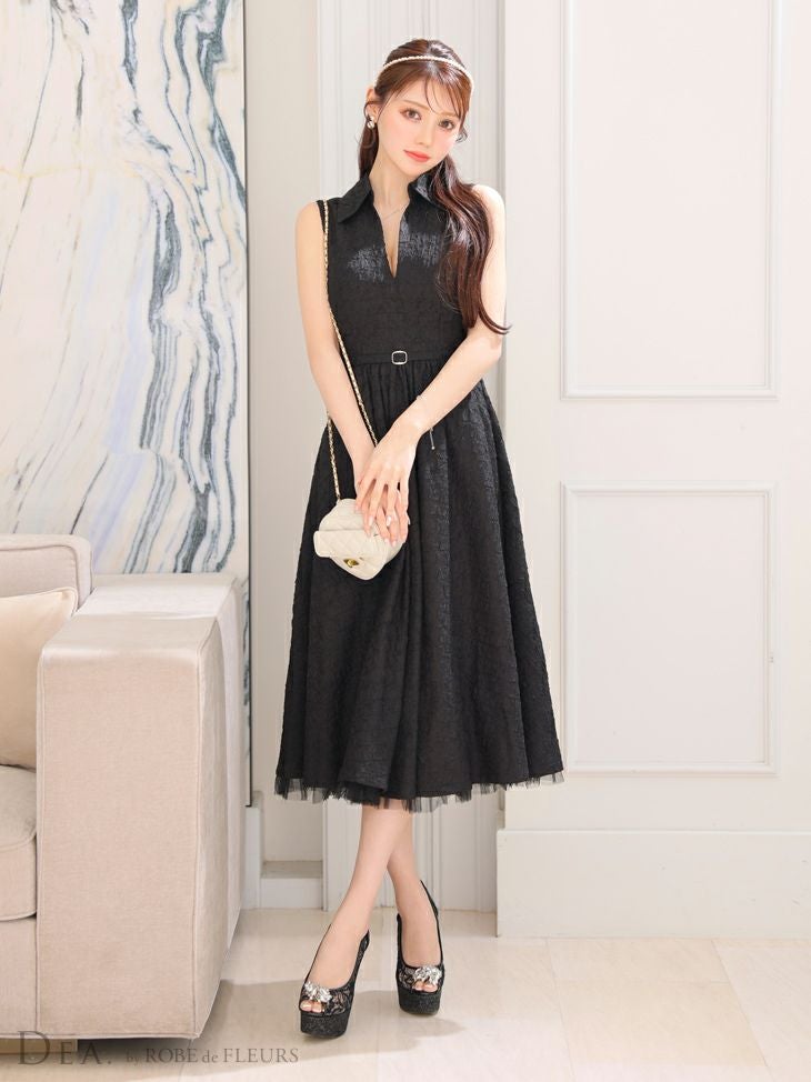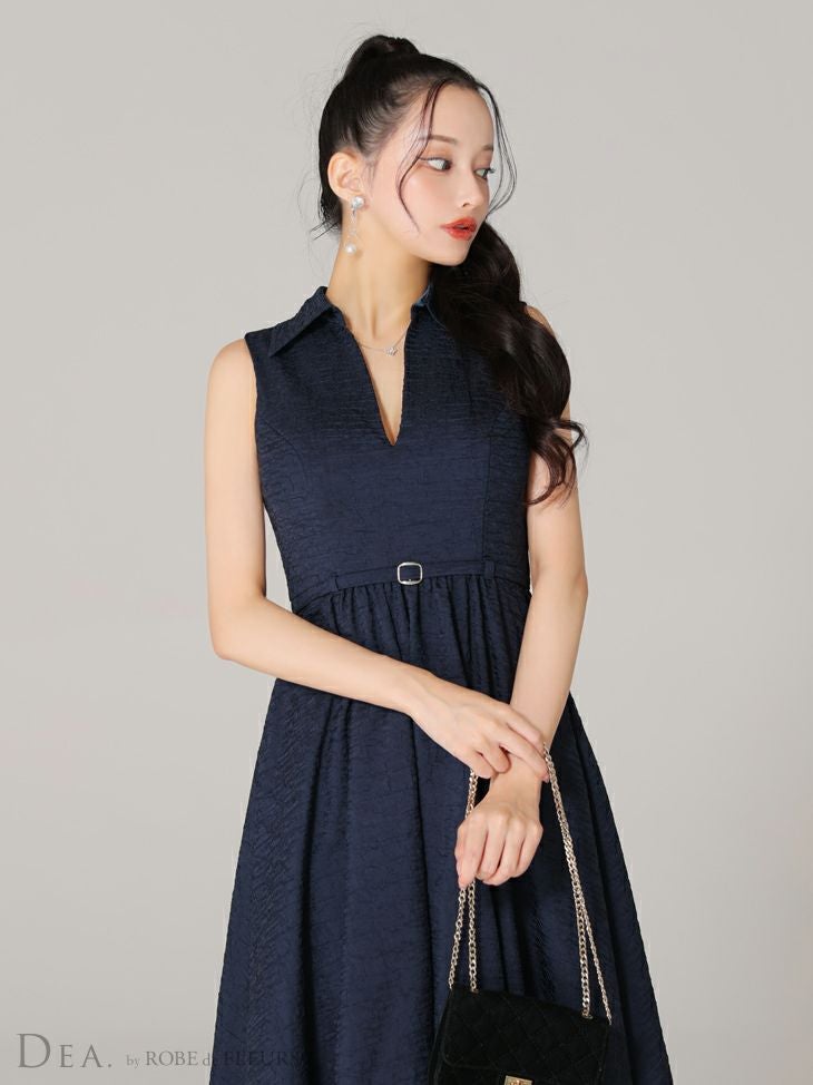 5. [DEA.byROBEdeFLEURS/ディアバイローブドフルール] 高級 襟付き vネック ノースリーブ ウエストベルト Aラインロングドレス