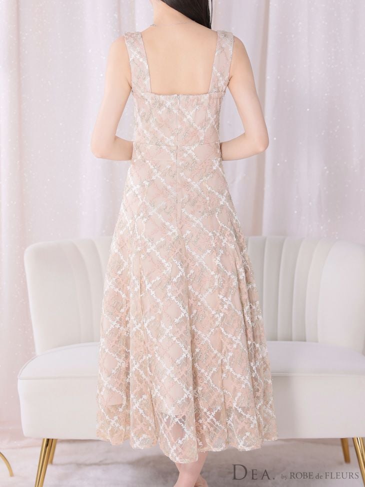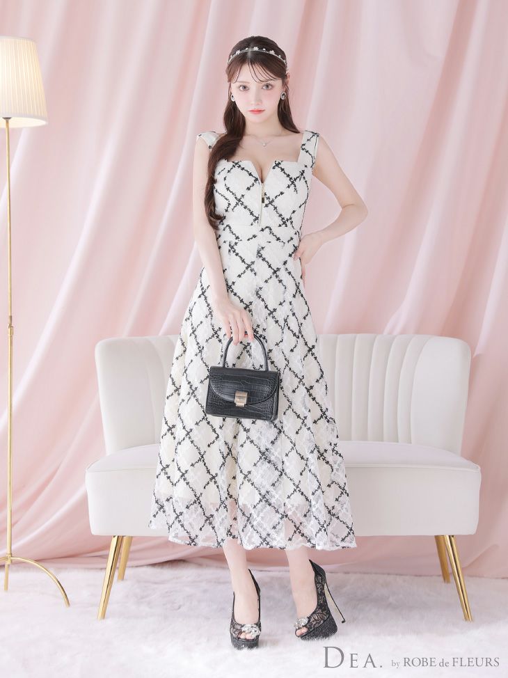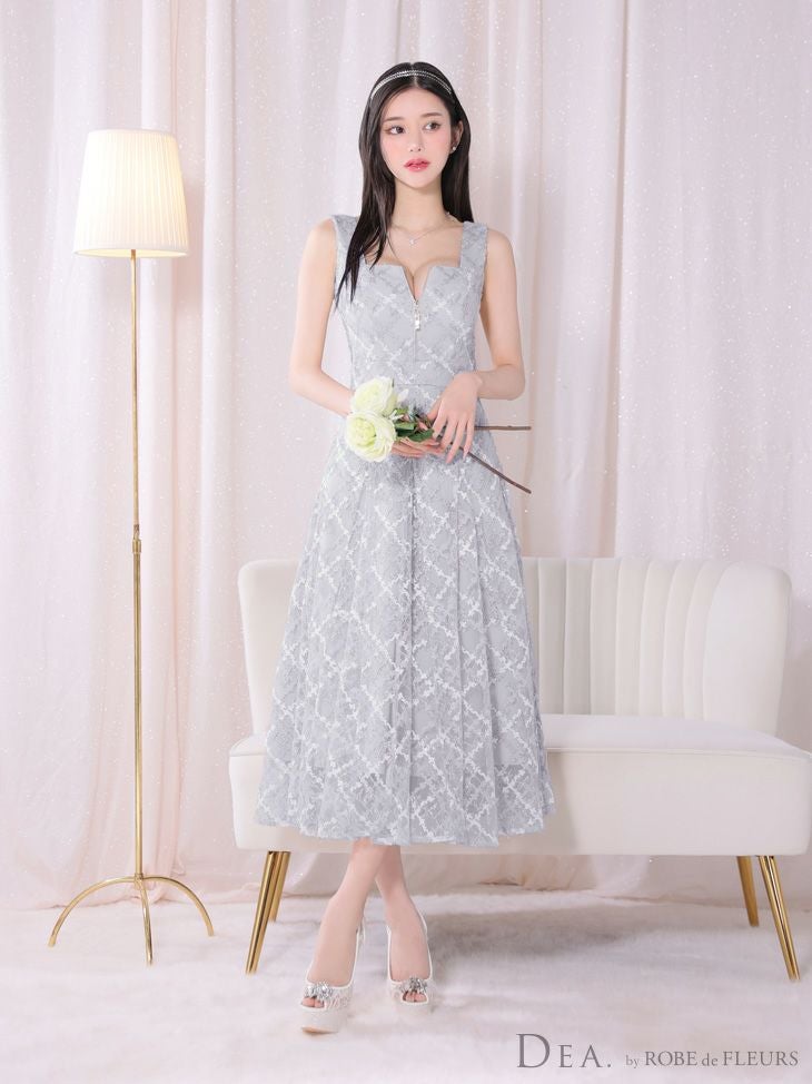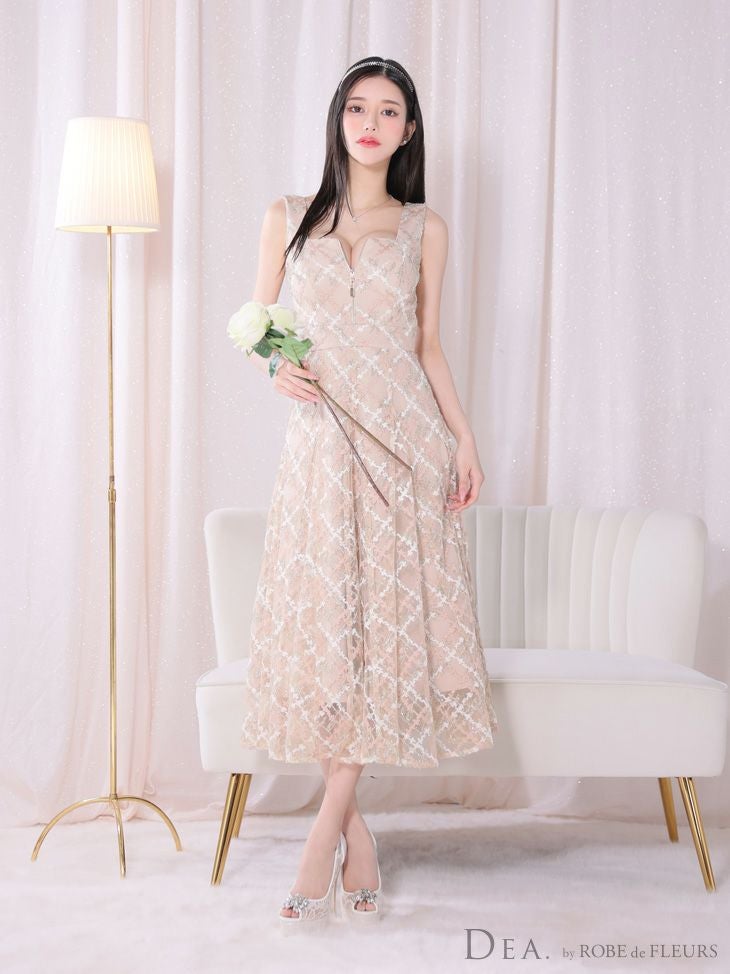 4. [DEA.byROBEdeFLEURS/ディアバイローブドフルール] 高級刺繍レースノースリーブバストジップAラインロングドレス
