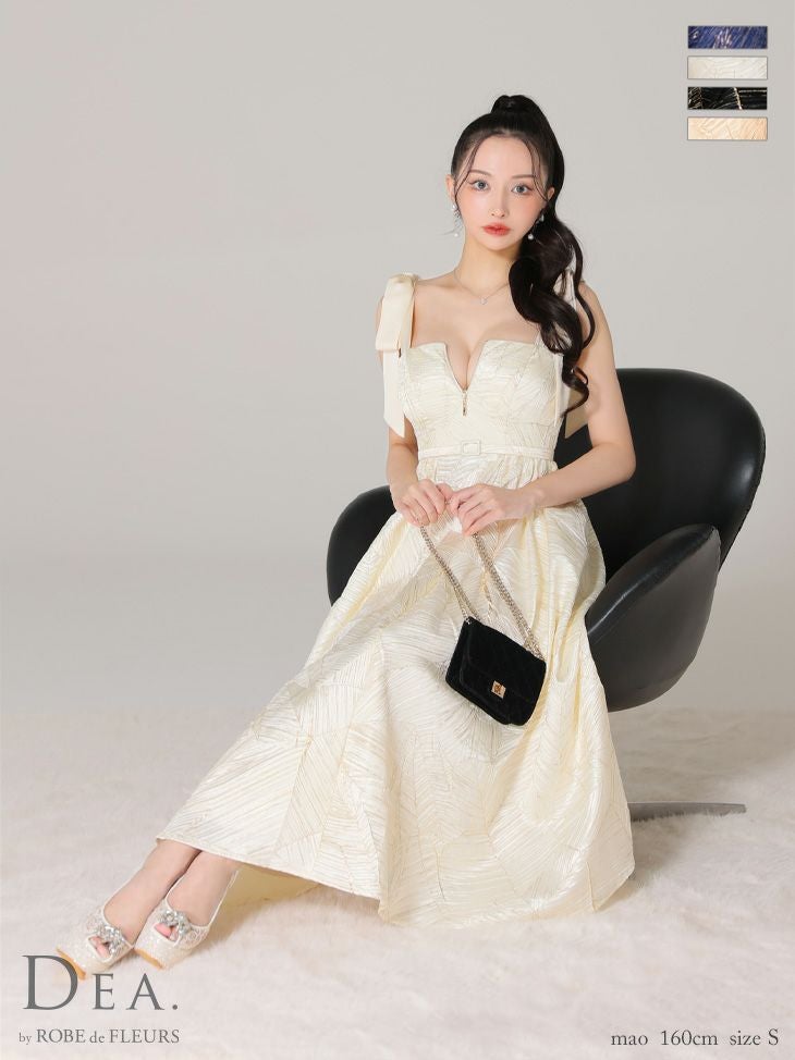 キャバドレス ロングドレス DEA.byROBEdeFLEURS ディアバイローブドフルール 高級ノースリーブジップウエストベルトジャガードサテンリボンAラインロングドレス