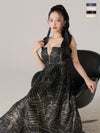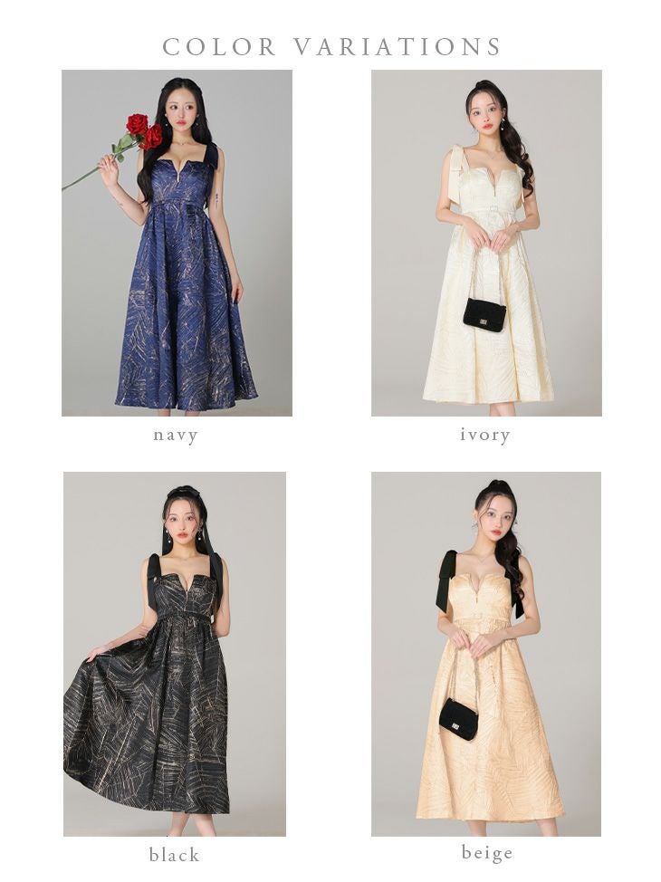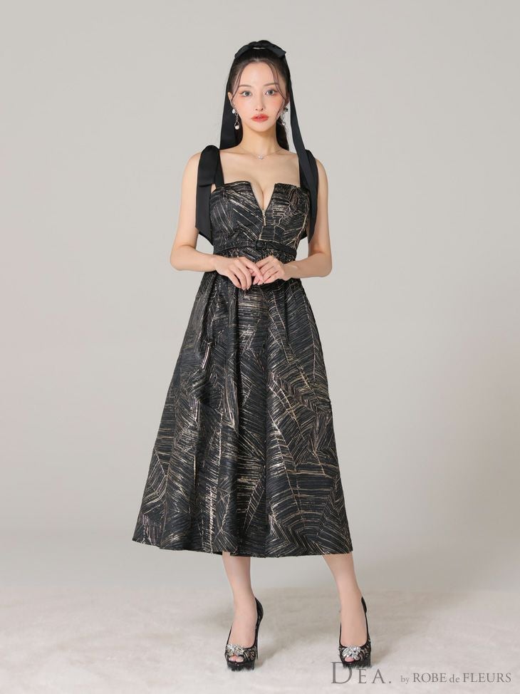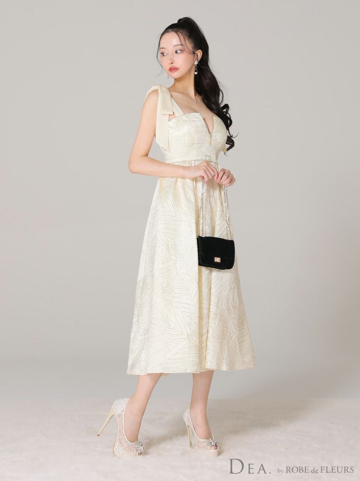 5. [DEA.byROBEdeFLEURS/ディアバイローブドフルール] 高級ノースリーブジップウエストベルトジャガードサテンリボンAラインロングドレス