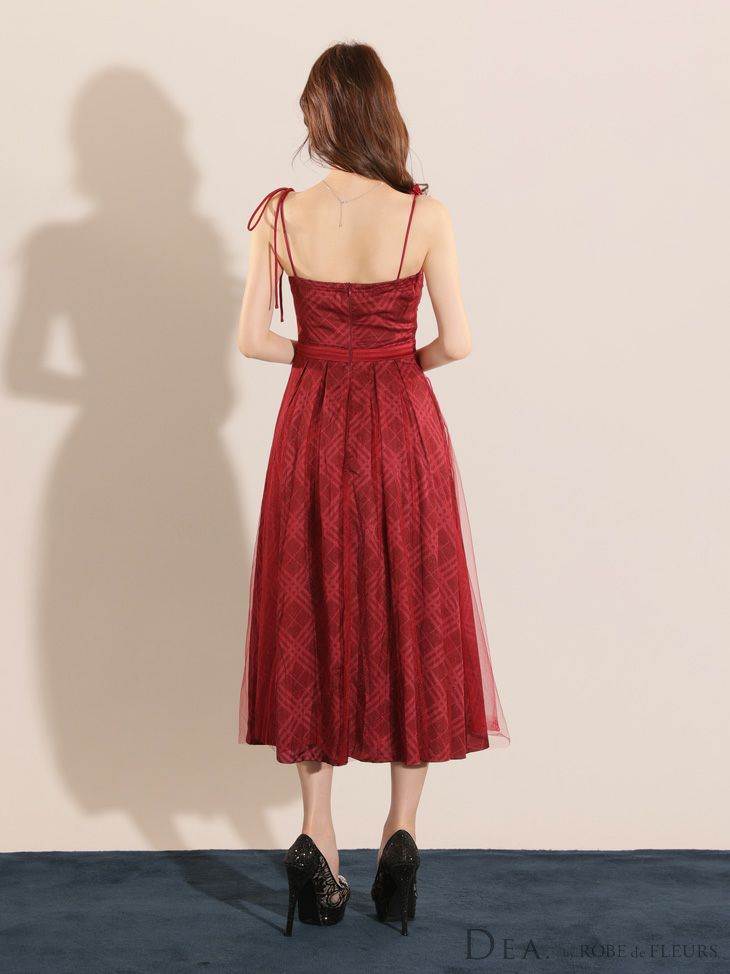 4. [DEA.byROBEdeFLEURS/ディアバイローブドフルール] 高級キャミソールチェック柄ウエストベルトチュールAラインロングドレス