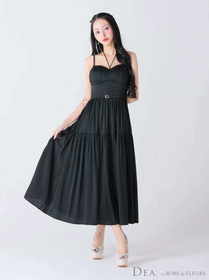 キャバドレス ロングドレス DEA.byROBEdeFLEURS ディアバイローブドフルール 高級ホルターネックリボンキャミソールウエストベルトラメシフォンAラインロングドレス