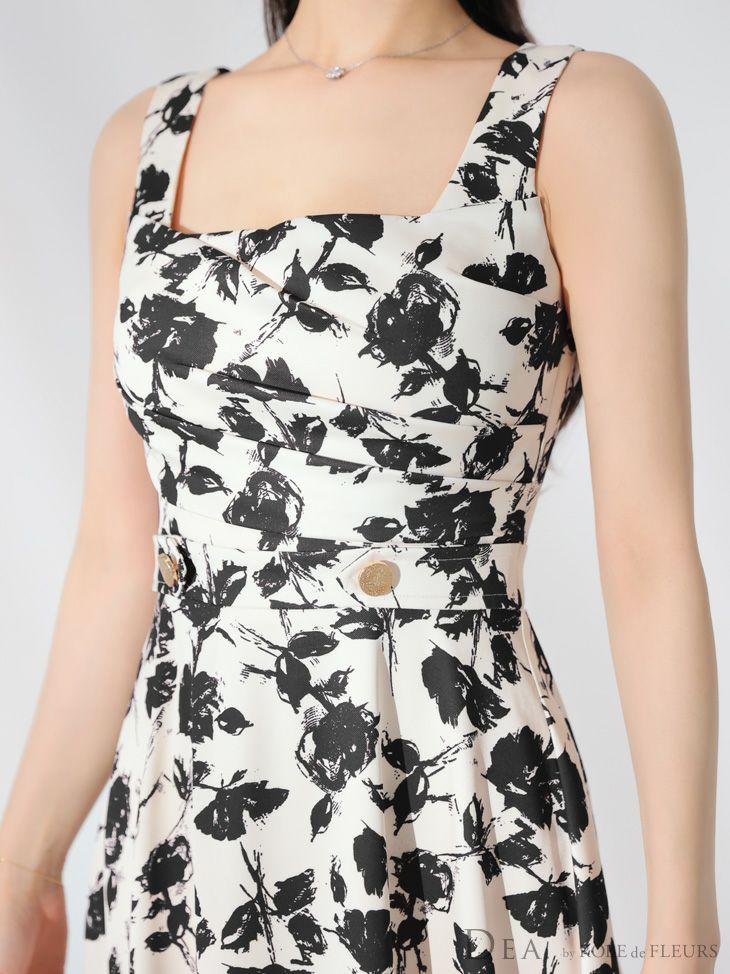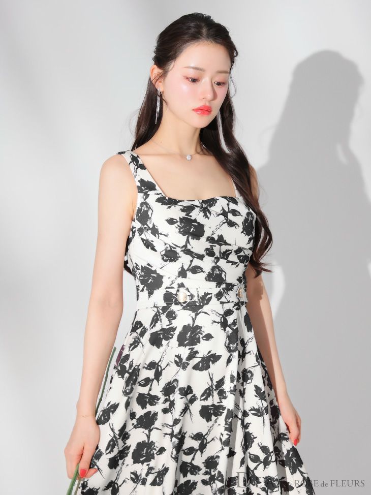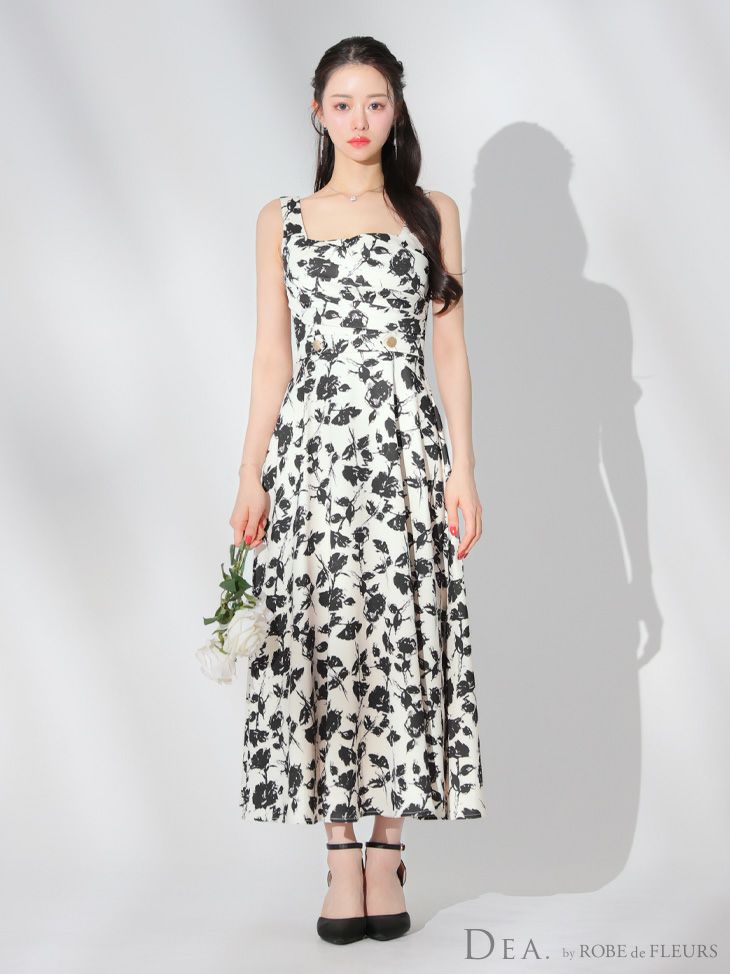 4. [DEA.byROBEdeFLEURS/ディアバイローブドフルール] 高級スクエアネックフラワーウエストベルト切替Aラインロングドレス