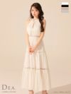 4. [DEA.byROBEdeFLEURS/ディアバイローブドフルール] 高級 ブランド ワンピース Aラインロングドレス ホルターネック 谷間 ネックリボン バストカット スカラップレース