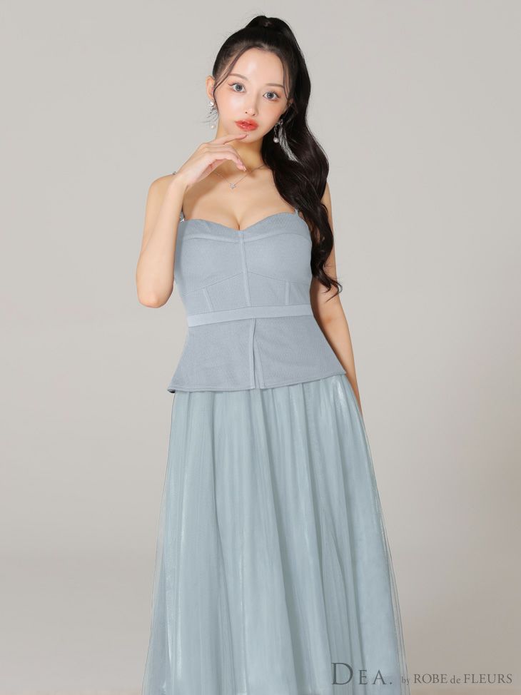 5. [DEA.byROBEdeFLEURS/ディアバイローブドフルール] 高級キャミソールチュールオーガンジーAラインロングドレス