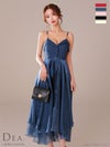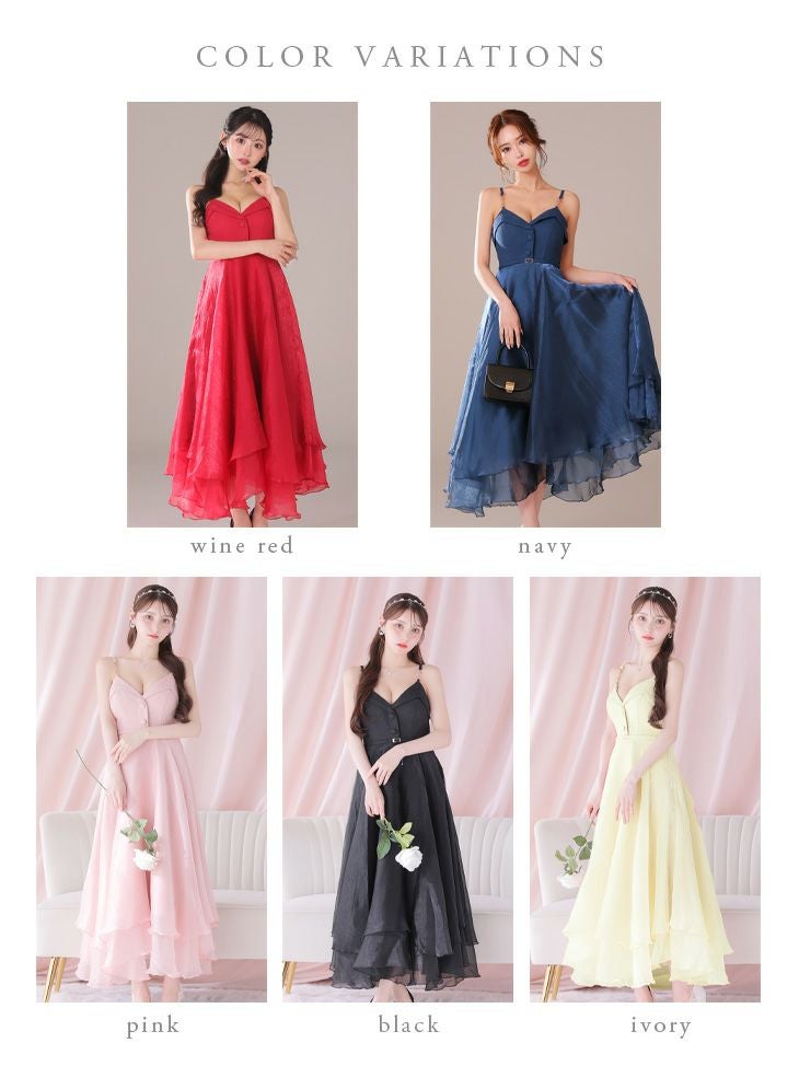 5. [DEA.byROBEdeFLEURS/ディアバイローブドフルール] 高級フロント飾りボタンウエストベルトチェーンキャミソールオーガンジーAラインロングドレス