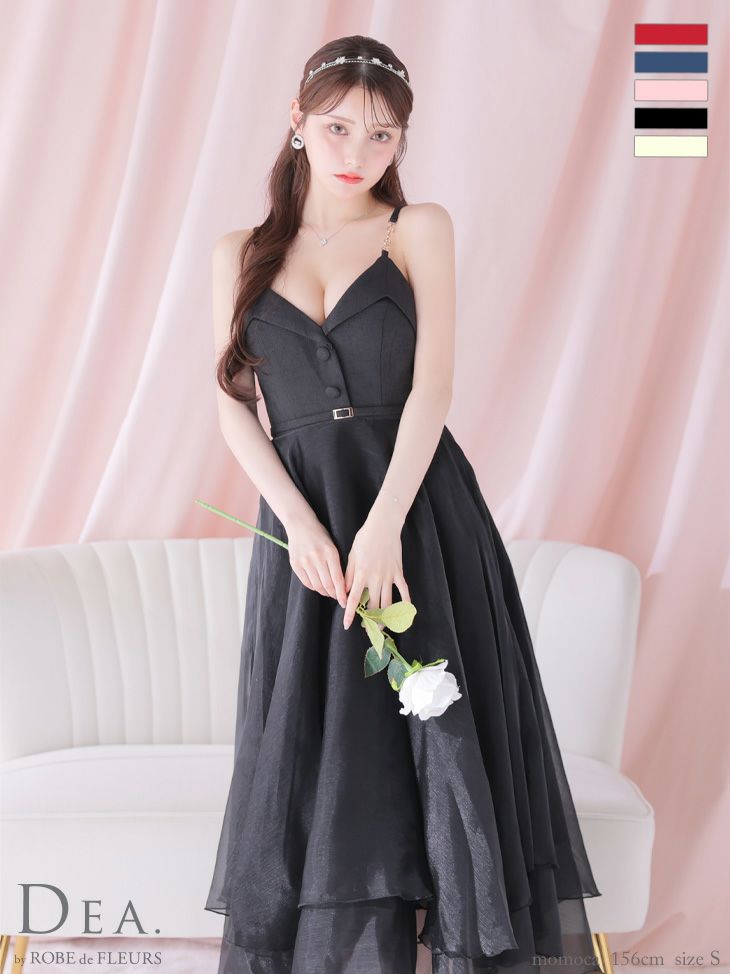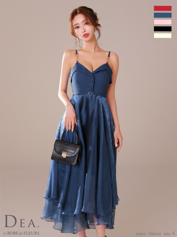 キャバドレス ロングドレス DEA.byROBEdeFLEURS ディアバイローブドフルール 高級フロント飾りボタンウエストベルトチェーンキャミソールオーガンジーAラインロングドレス