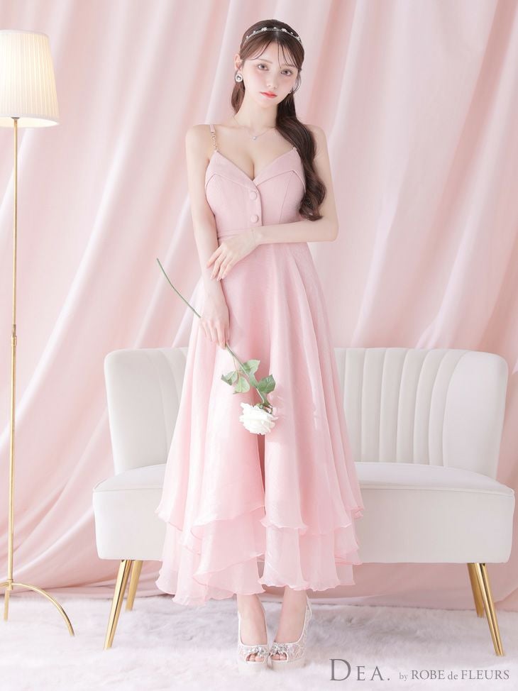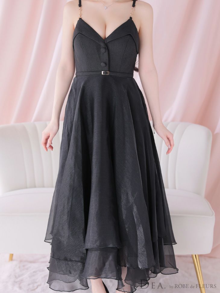 4. [DEA.byROBEdeFLEURS/ディアバイローブドフルール] 高級フロント飾りボタンウエストベルトチェーンキャミソールオーガンジーAラインロングドレス