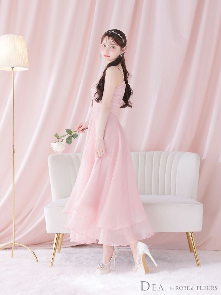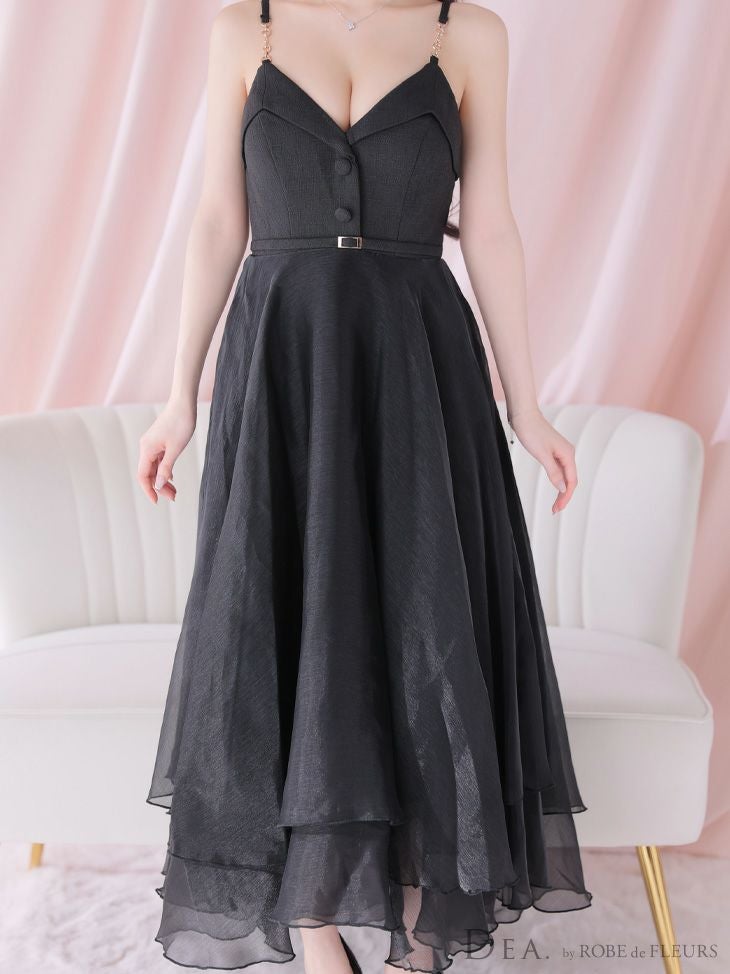 大人の上品さ溢れるドレス☆ [DEA.byROBEdeFLEURS/ディアバイローブドフルール] 高級フロント飾りボタンウエストベルトチェーンキャミソールオーガンジーAラインロングドレス