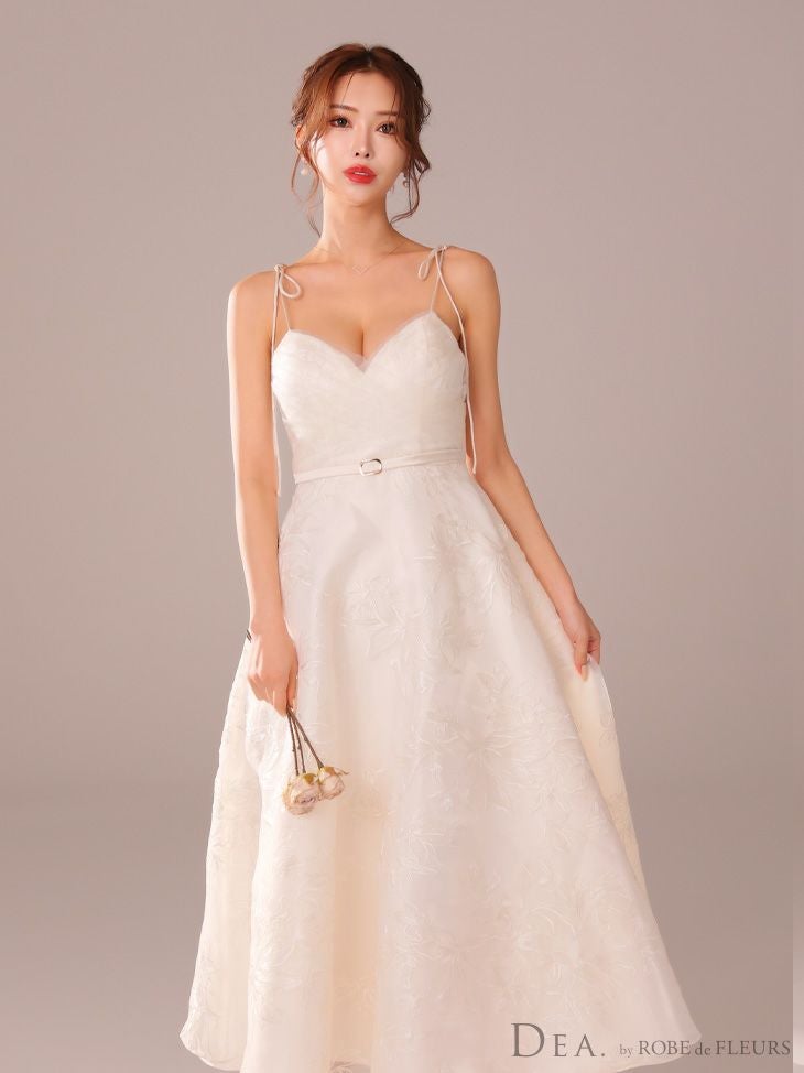 6. [DEA.byROBEdeFLEURS/ディアバイローブドフルール] 高級キャミソールウエストベルト花柄刺繍オーガンジーチュールAラインロングドレス