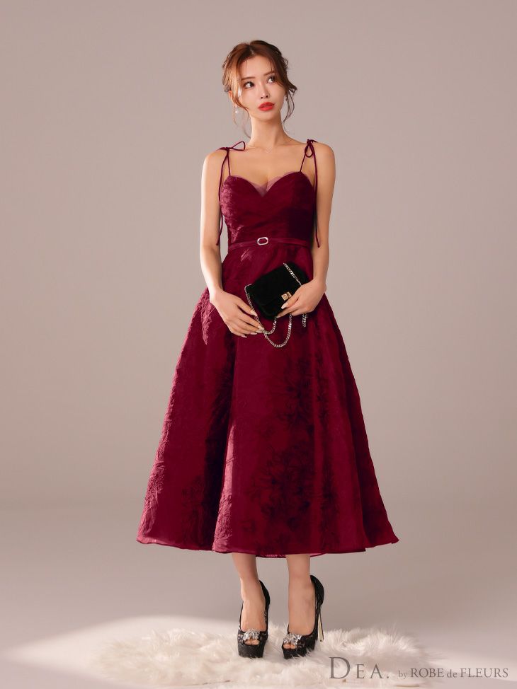 キャバドレス ロングドレス DEA.byROBEdeFLEURS ディアバイローブドフルール 高級キャミソールウエストベルト花柄刺繍オーガンジーチュールAラインロングドレス