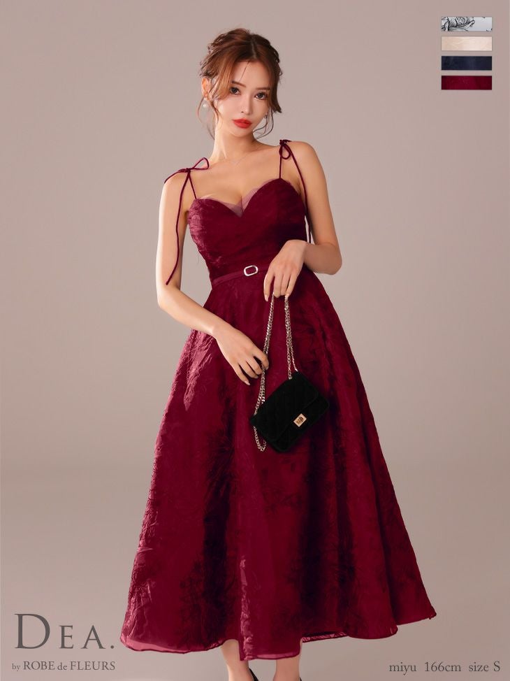 キャバドレス ロングドレス DEA.byROBEdeFLEURS ディアバイローブドフルール 高級キャミソールウエストベルト花柄刺繍オーガンジーチュールAラインロングドレス