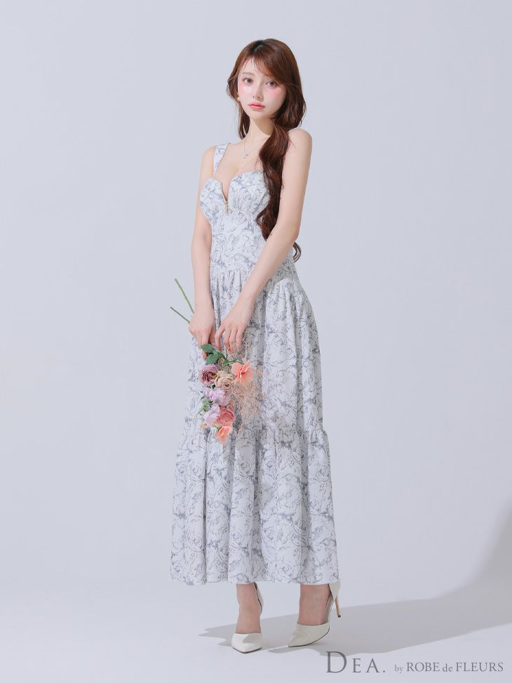 大人レディに格上げしてくれる♡ [DEA.byROBEdeFLEURS/ディアバイローブドフルール] 高級 ブランド ワンピース Aラインロングドレス キャミソール ジップ 花柄