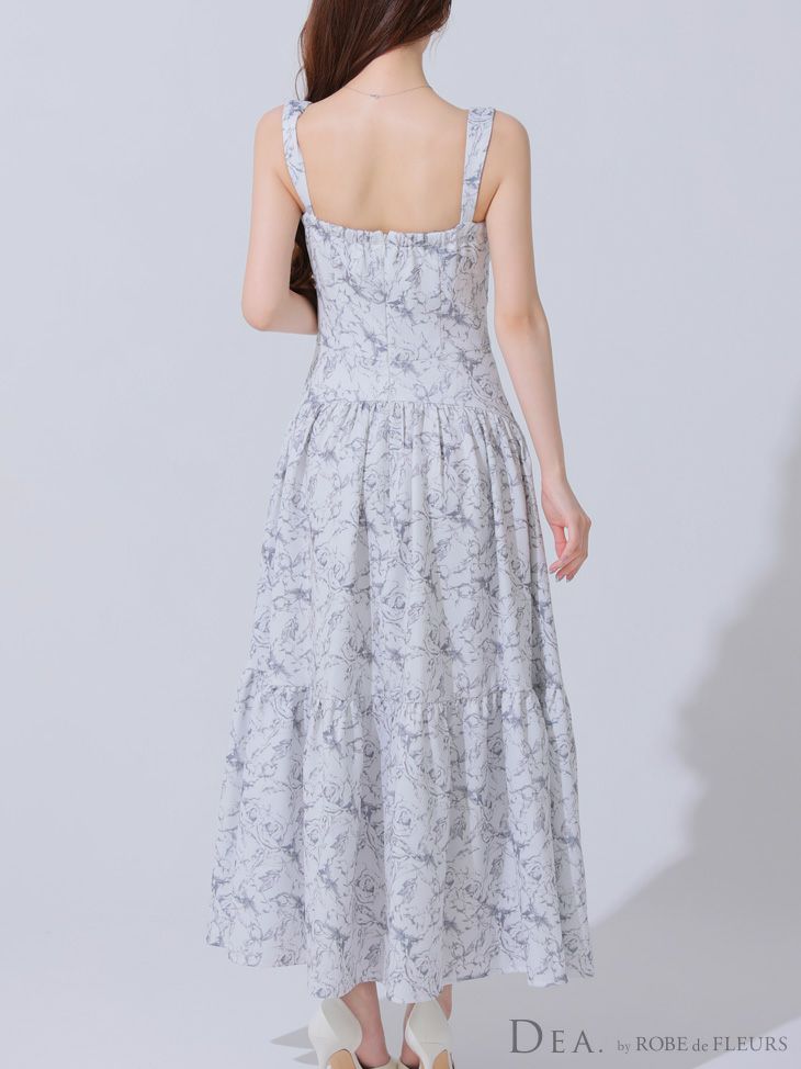 4. [DEA.byROBEdeFLEURS/ディアバイローブドフルール] 高級 ブランド ワンピース Aラインロングドレス キャミソール ジップ 花柄