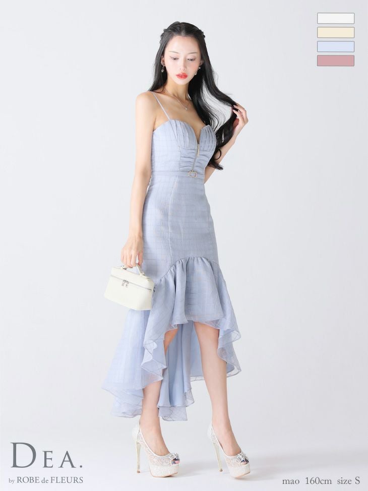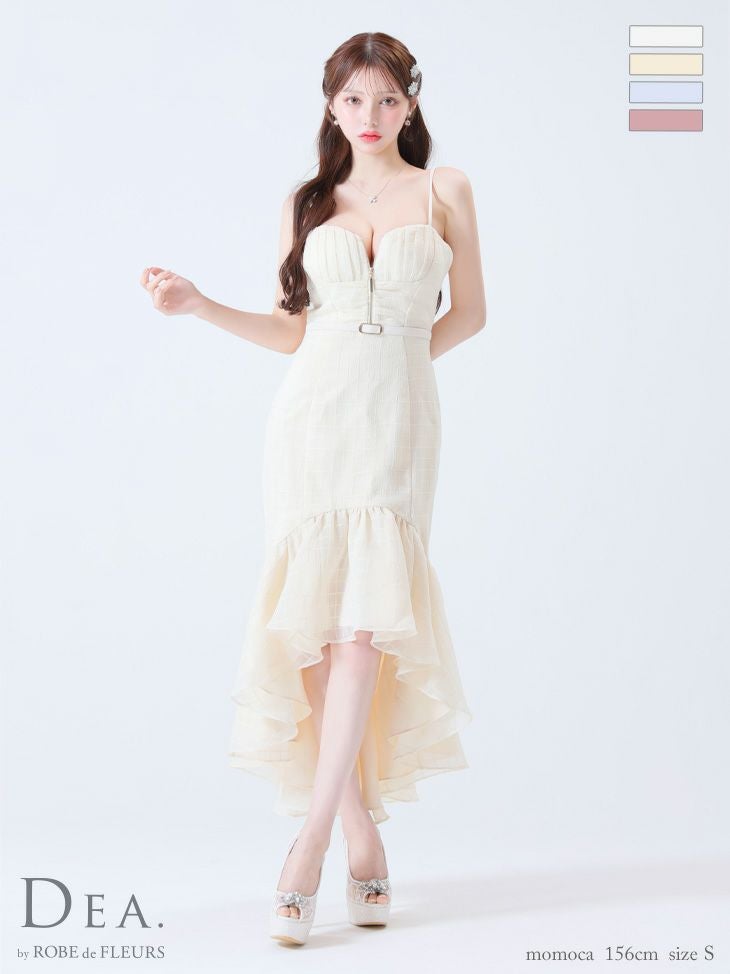 キャバドレス ロングテールドレス DEA.byROBEdeFLEURS ディアバイローブドフルール 高級チェック柄キャミソールジップウエストベルトマーメイドレースフリルロングテールドレス