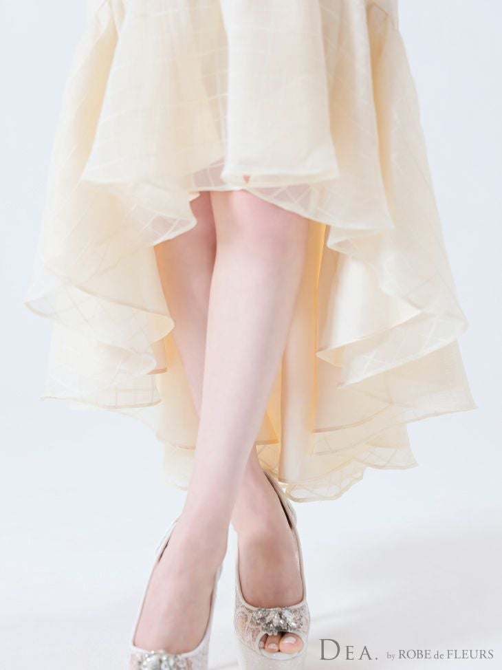 脚長効果抜群の一着☆ [DEA.byROBEdeFLEURS/ディアバイローブドフルール] 高級チェック柄キャミソールジップウエストベルトマーメイドレースフリルロングテールドレス
