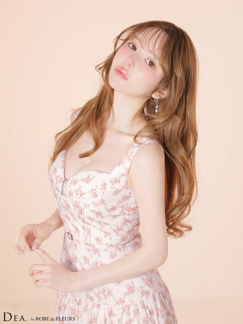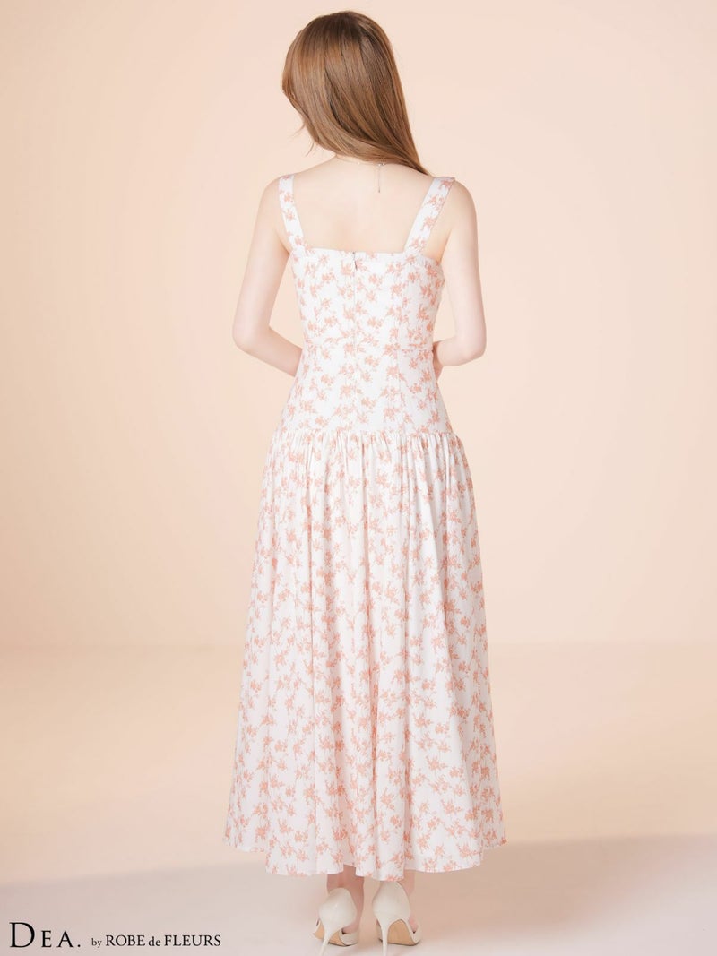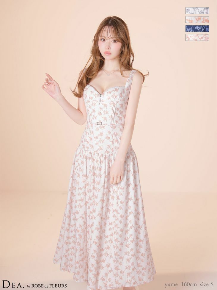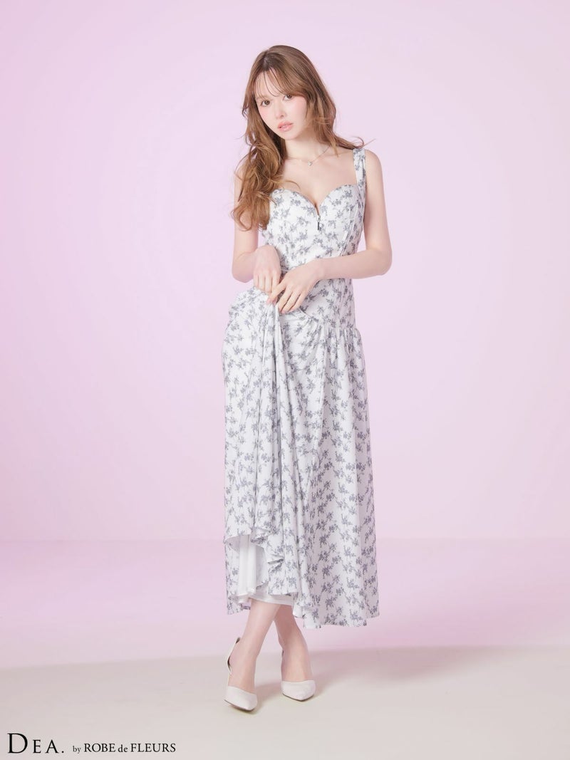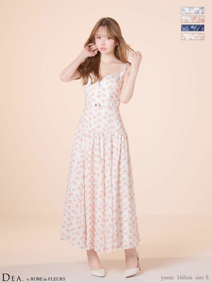 4. [DEA.byROBEdeFLEURS/ディアバイローブドフルール] 高級 ブランド Aラインロングドレス 谷間 ノースリーブ ハートカット ジップ ウエストベルト フラワー マットサテン