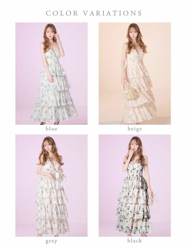 5. [DEA.byROBEdeFLEURS/ディアバイローブドフルール] 高級 ブランド Aラインロングドレス 谷間 ベア ジップ フラワーシフォン ティアード