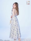 5. [DEA.byROBEdeFLEURS/ディアバイローブドフルール] 高級 ブランド Aラインロングドレス キャミソール 背中魅せ バックリボン ジップ フラワープリント サテン