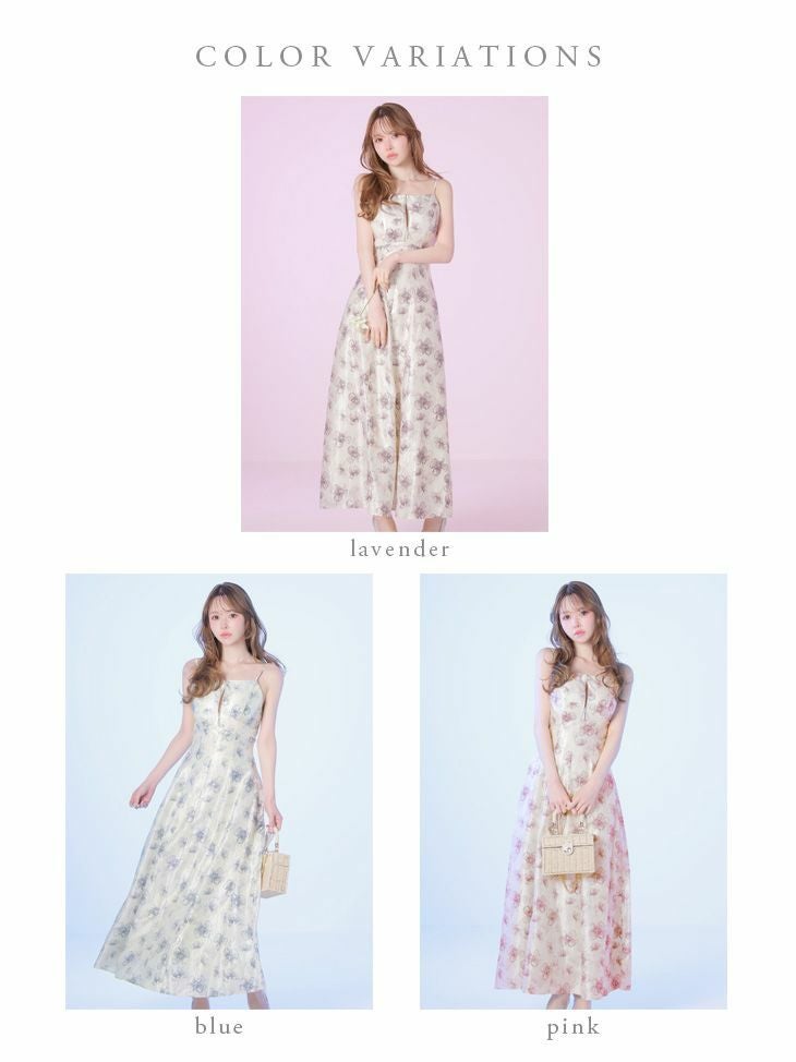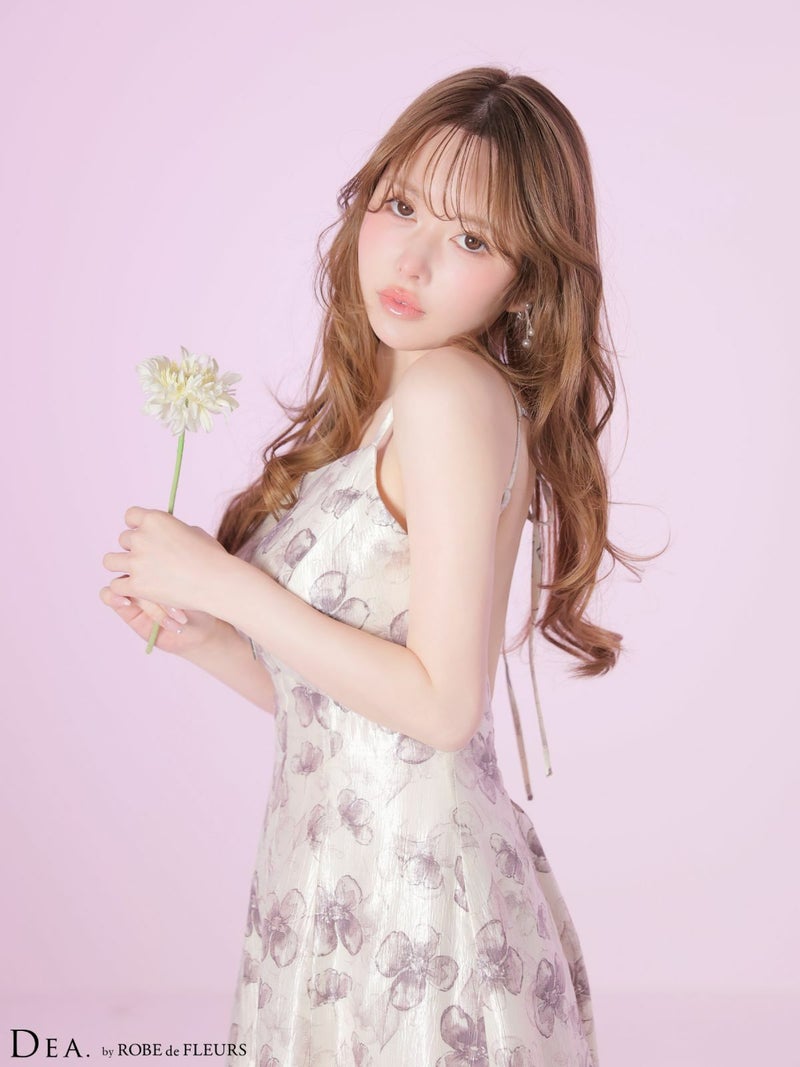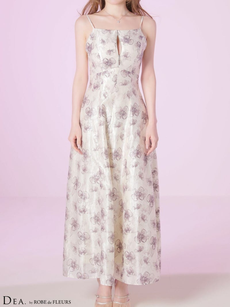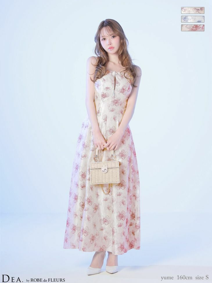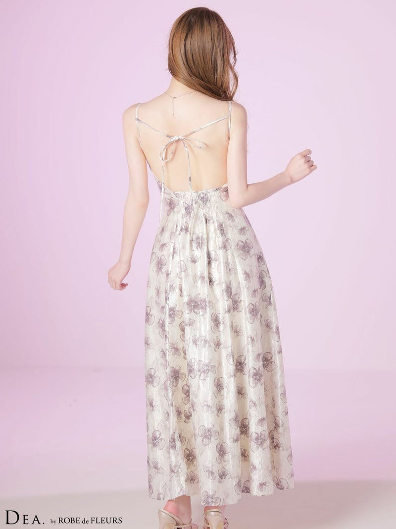 大胆な後ろ姿でドキッとさせる♡ [DEA.byROBEdeFLEURS/ディアバイローブドフルール] 高級 ブランド Aラインロングドレス キャミソール 背中魅せ バックリボン ジップ フラワープリント サテン