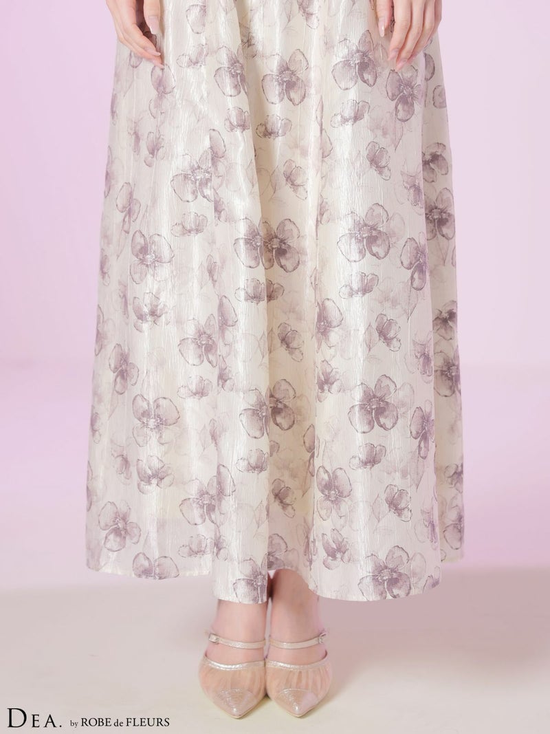 4. [DEA.byROBEdeFLEURS/ディアバイローブドフルール] 高級 ブランド Aラインロングドレス キャミソール 背中魅せ バックリボン ジップ フラワープリント サテン