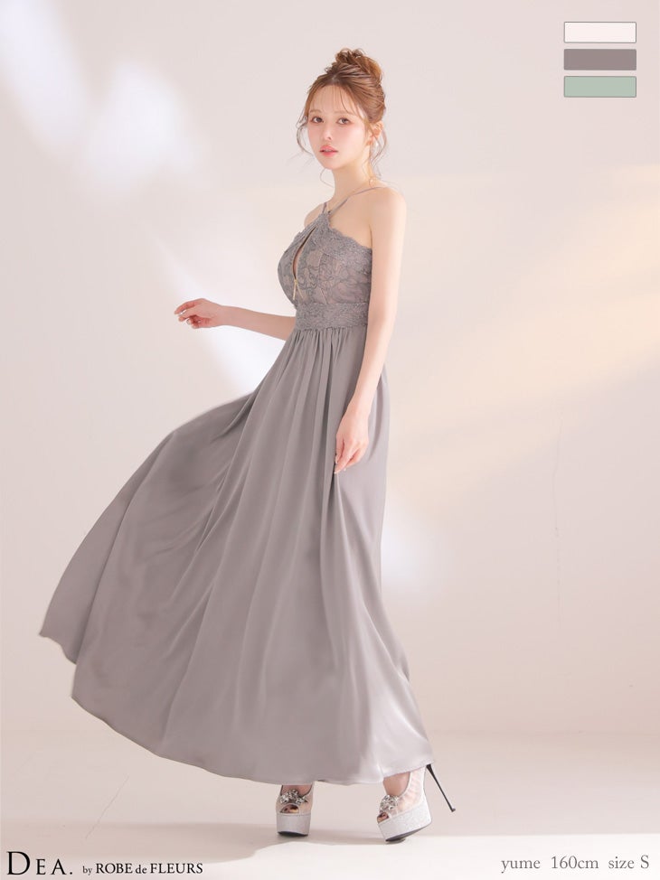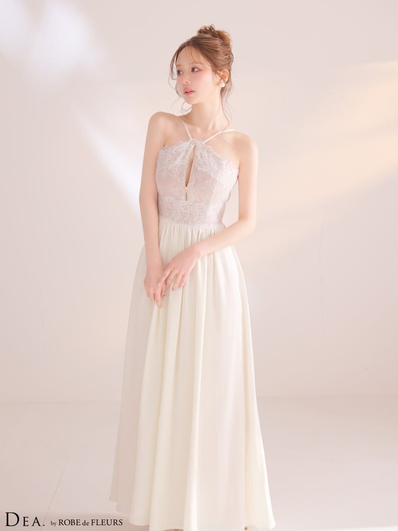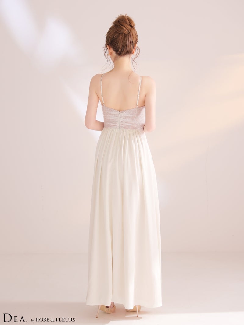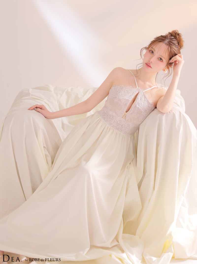 トップスに飾られたフラワーレースで高級感漂う♡ [DEA.byROBEdeFLEURS/ディアバイローブドフルール] 高級 ブランド Aラインロングドレス キャミソール レース 谷間 花柄 サテン チュール