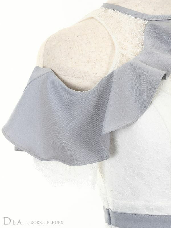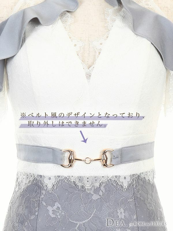 4. [DEA.byROBEdeFLEURS/ディアバイローブドフルール] 高級バイカラーフリルレース切替ベルトモチーフ肩出し 二の腕カバータイトミニドレス