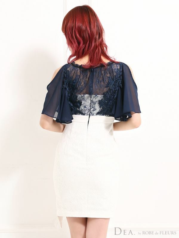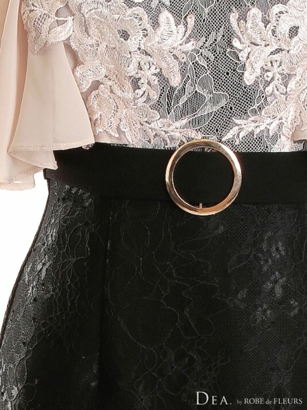 4. [DEA.byROBEdeFLEURS/ディアバイローブドフルール] 高級シフォン肩出し 二の腕カバーウエストベルト切替タイトミニドレス