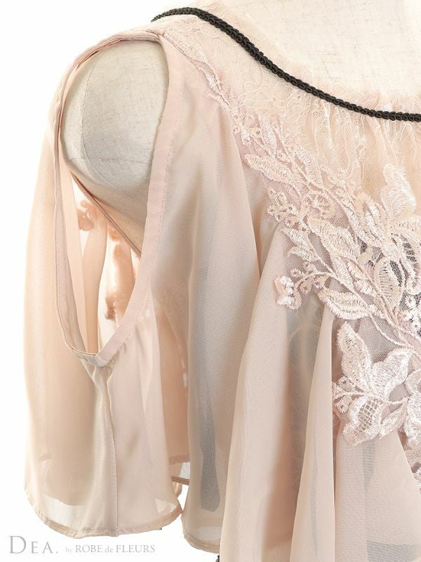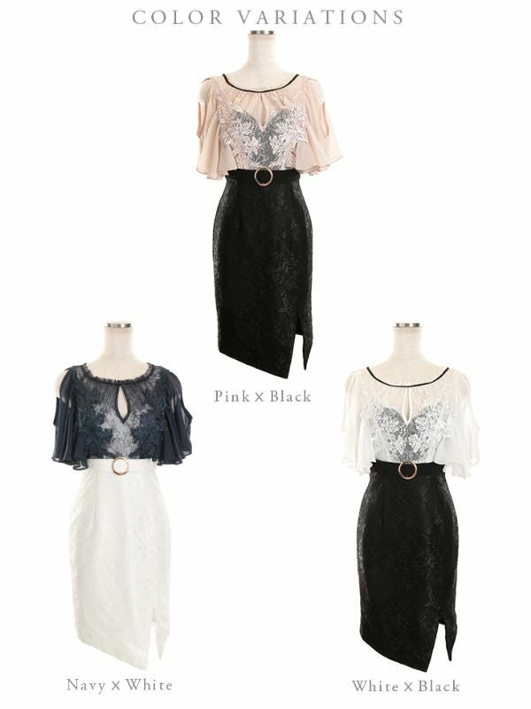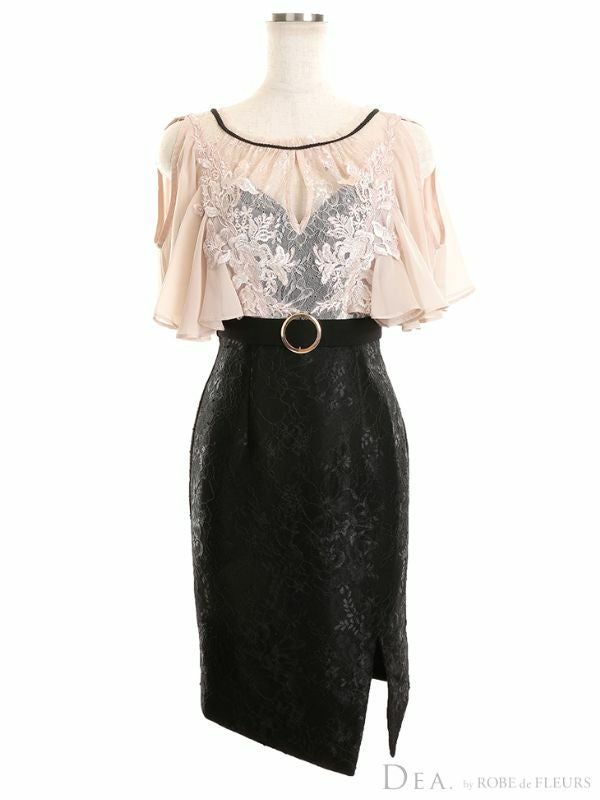 程よい肌魅せで上品レディに☆ [DEA.byROBEdeFLEURS/ディアバイローブドフルール] 高級シフォン肩出し 二の腕カバーウエストベルト切替タイトミニドレス