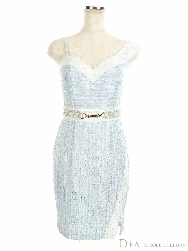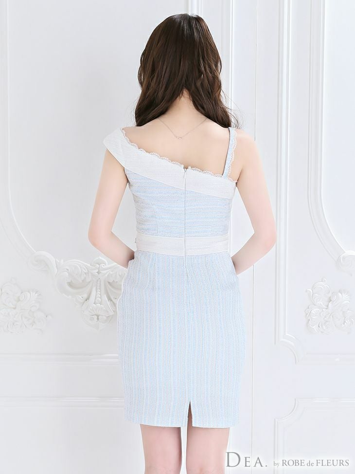 アシンメトリーデザインで差をつける☆ [DEA.byROBEdeFLEURS/ディアバイローブドフルール] 高級ラメツイードアシメントリータイトミニドレス