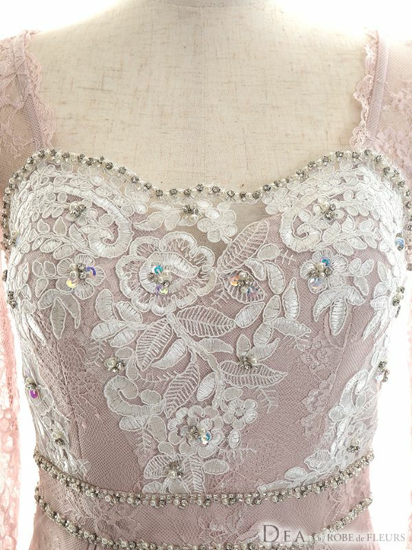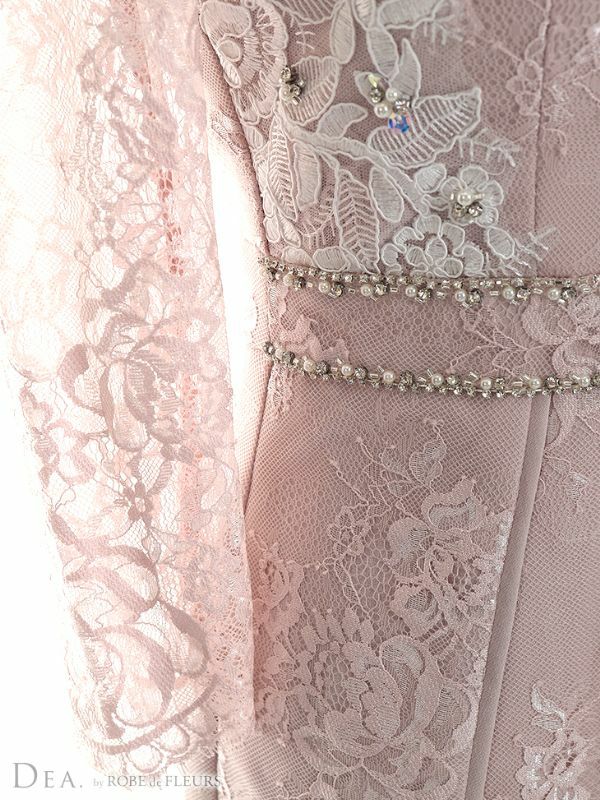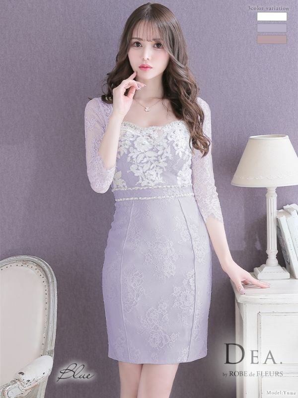 DEA.byROBEdeFLEURS ディアバイローブドフルール 高級袖ありレースフラワー刺繍ビジュー膝丈タイトドレス