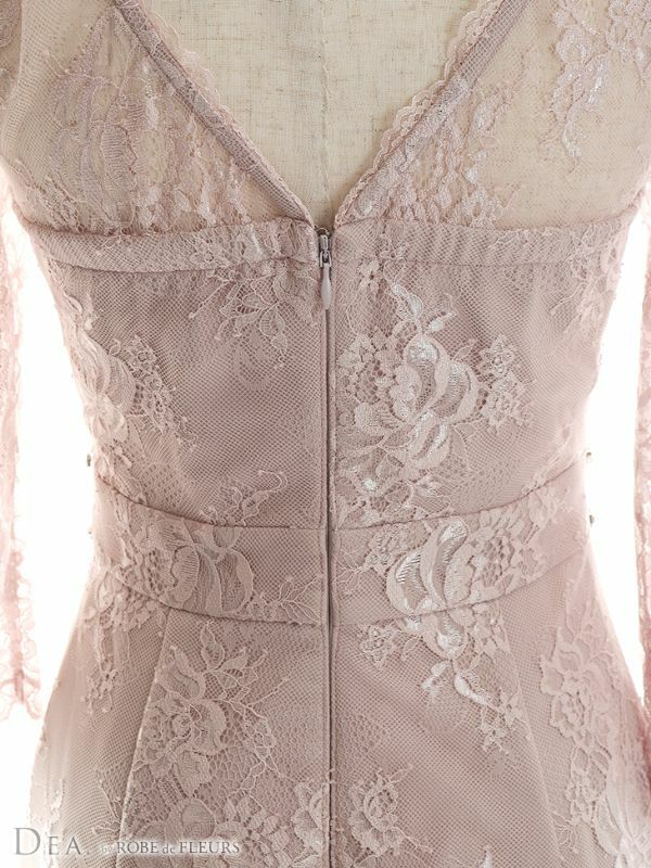 4. [DEA.byROBEdeFLEURS/ディアバイローブドフルール] 高級袖ありレースフラワー刺繍ビジュー膝丈タイトドレス