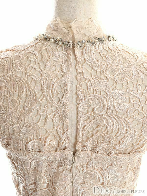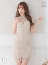 高級感のある刺繍レースで仕上げ☆ [DEA.byROBEdeFLEURS/ディアバイローブドフルール] 高級 チョーカー ビジューネック バストカット ノースリーブ 総ケミカルレース 谷間魅せ タイト 膝丈ドレス