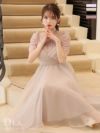 4. [DEA.byROBEdeFLEURS/ディアバイローブドフルール] 高級チュール×レースブラウスセット半袖フレア膝丈ワンピースドレス