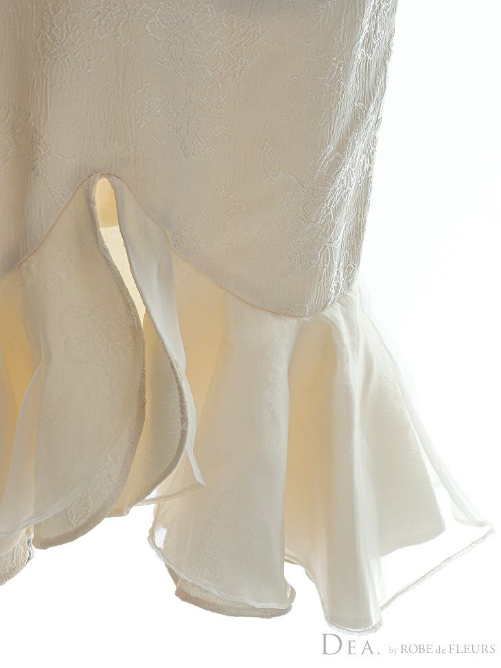 DEA.byROBEdeFLEURS ディアバイローブドフルール 高級Vネックノースリーブフリルマーメイドワンピーススリットジャガード膝丈ドレス