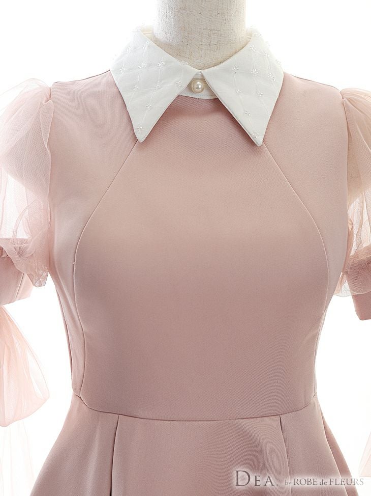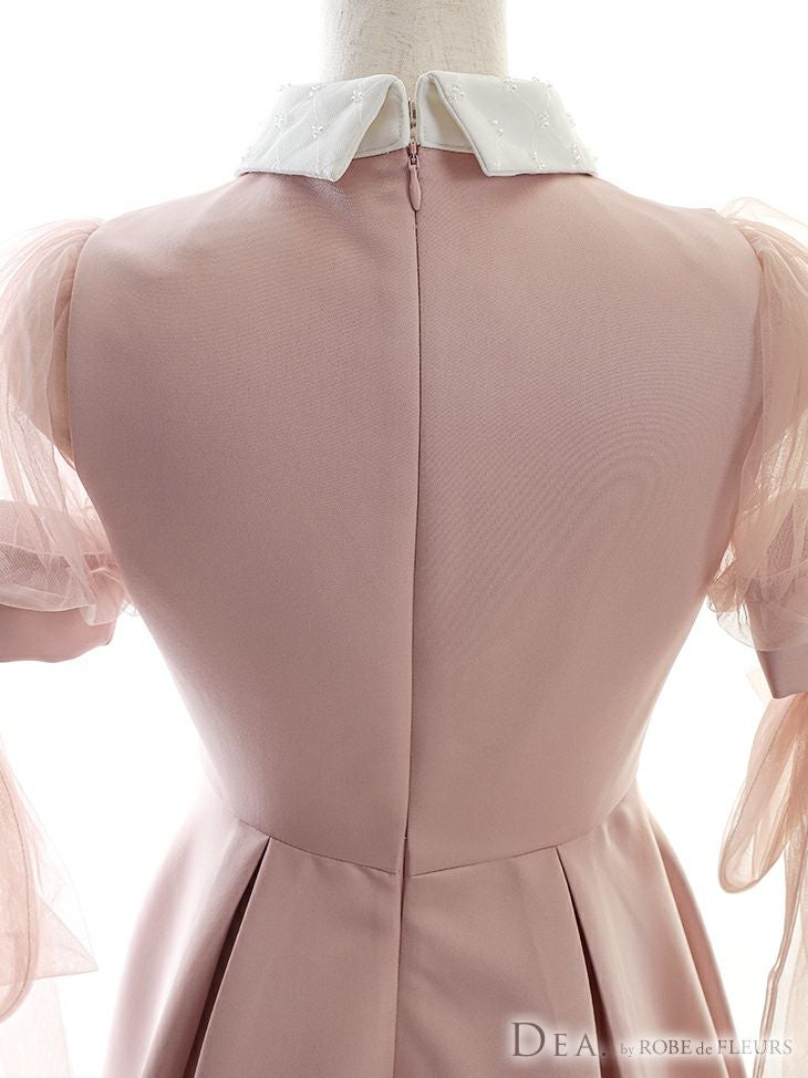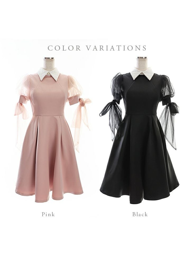 キャバドレス ミニドレス [SALE] DEA.byROBEdeFLEURS ディアバイローブドフルール 高級襟付きチュール半袖リボン膝丈Aラインワンピースドレス