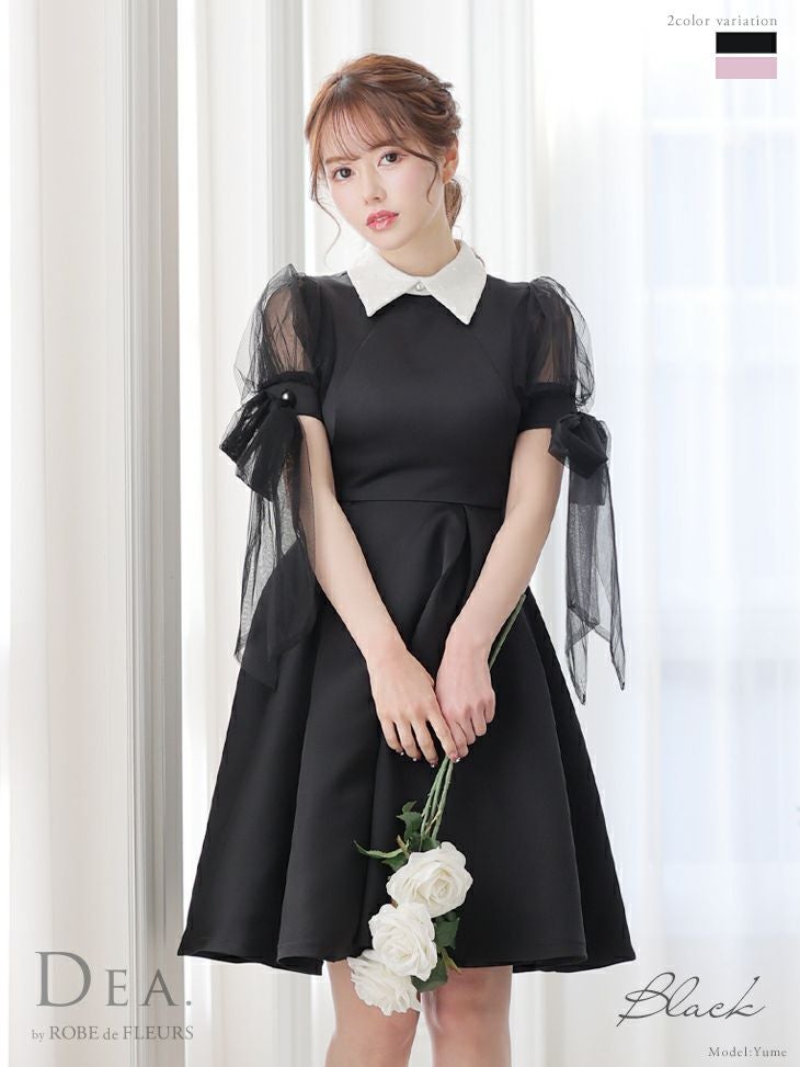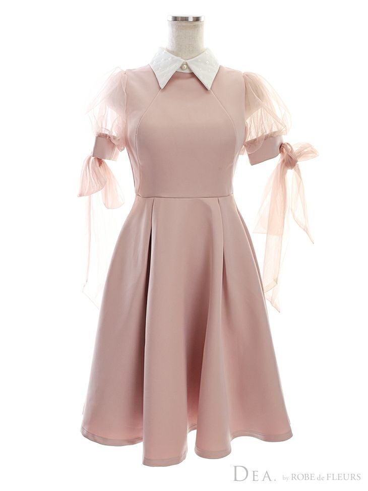 4. [DEA.byROBEdeFLEURS/ディアバイローブドフルール] 高級襟付きチュール半袖リボン膝丈Aラインワンピースドレス