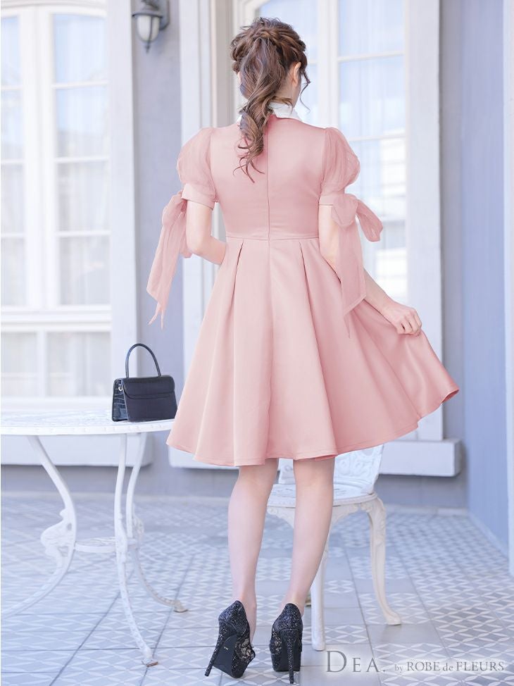 キャバドレス ミニドレス [SALE] [DEA.byROBEdeFLEURS/ディアバイローブドフルール] 高級襟デザインチュール半袖リボン膝丈Aラインワンピースドレス