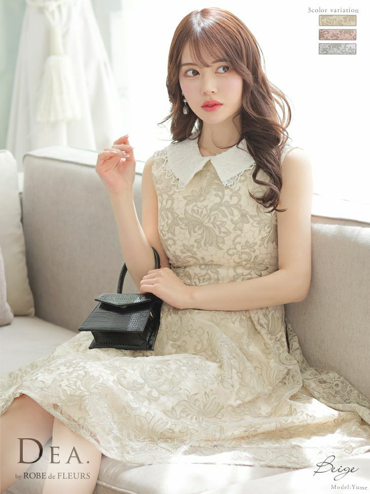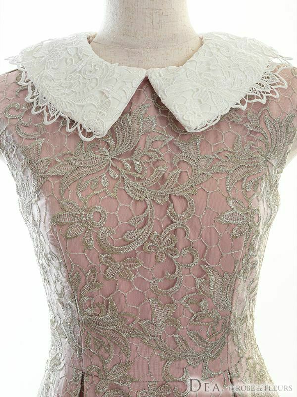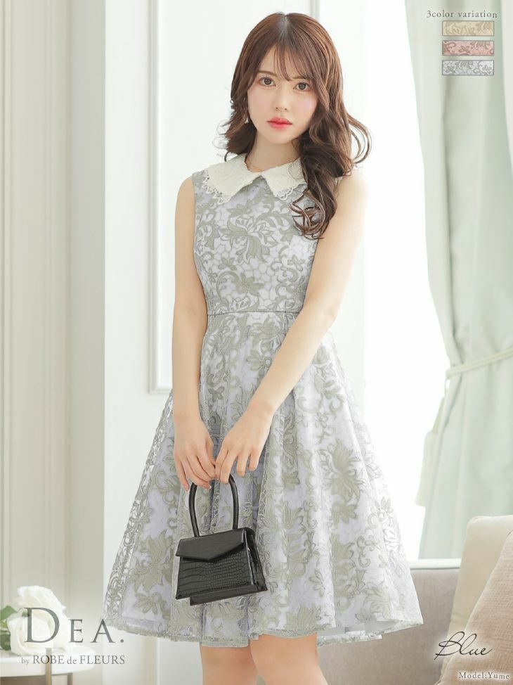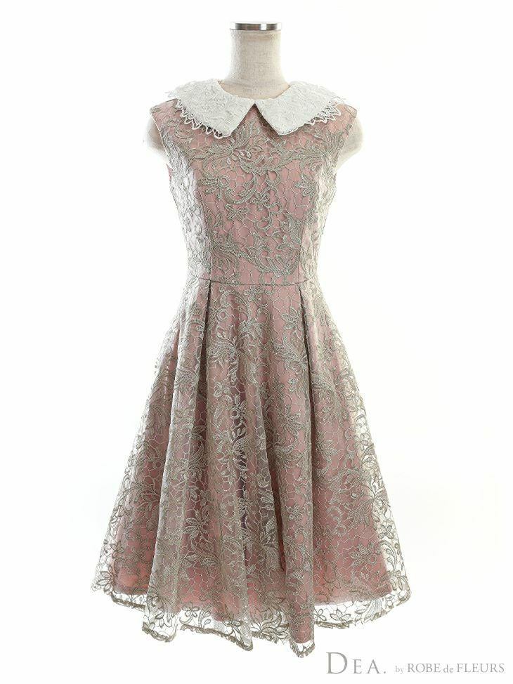 繊細なレースの清潔感のあるデザイン☆ [DEA.byROBEdeFLEURS/ディアバイローブドフルール] 高級 2WAY 襟付き ケミカルレース ノースリーブ フレア 膝丈ドレス