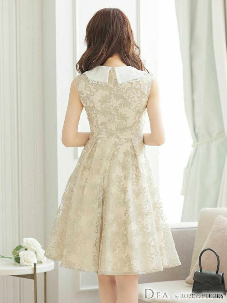 4. [DEA.byROBEdeFLEURS/ディアバイローブドフルール] 高級 2WAY 襟付き ケミカルレース ノースリーブ フレア 膝丈ドレス