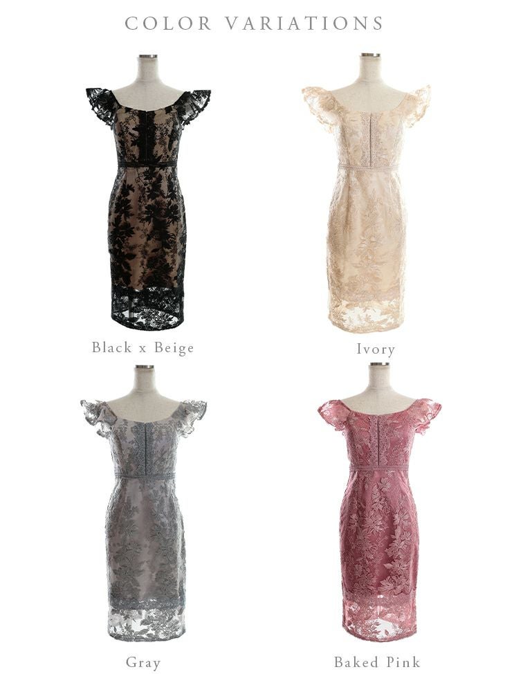 4. [DEA.byROBEdeFLEURS/ディアバイローブドフルール] 高級ノースリーブフラワー刺繍レースウエスト切替フリルスリーブタイト膝丈ドレス