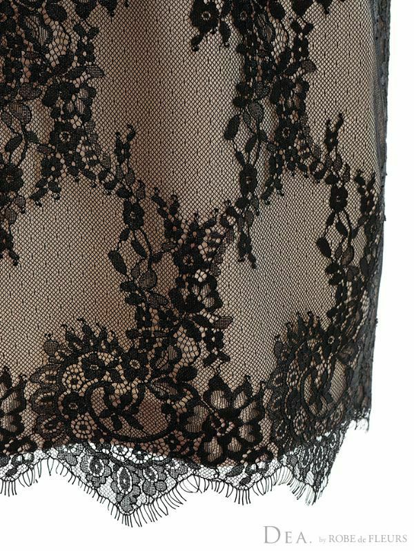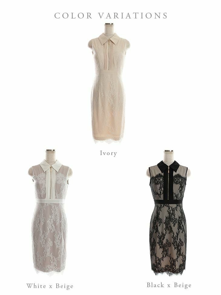 繊細なレースと襟が高級感溢れる☆ [DEA.byROBEdeFLEURS/ディアバイローブドフルール] 高級 フロントジップ 襟付き レース ノースリーブ ワンピース 膝丈ドレス