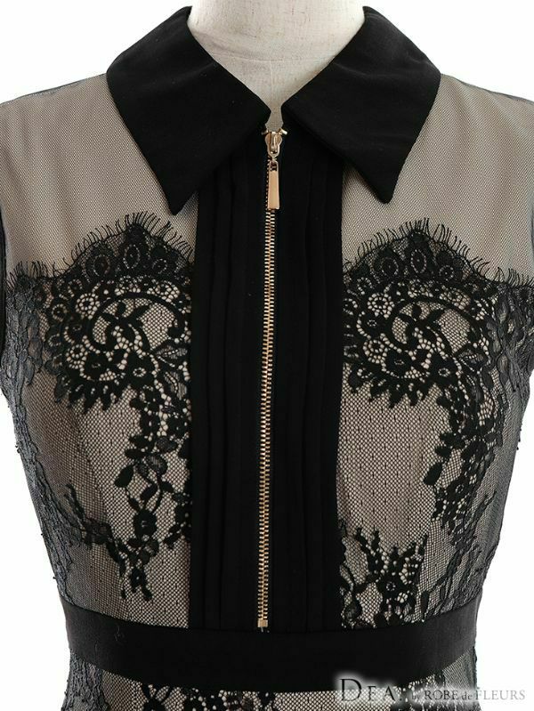 5. [DEA.byROBEdeFLEURS/ディアバイローブドフルール] 高級 フロントジップ 襟付き レース ノースリーブ ワンピース 膝丈ドレス