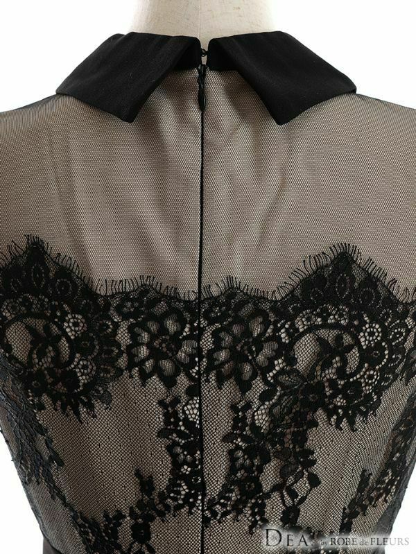バストをあまり強調したくない方にもおすすめ◎ [DEA.byROBEdeFLEURS/ディアバイローブドフルール] 高級 フロントジップ 襟付き レース ノースリーブ ワンピース 膝丈ドレス