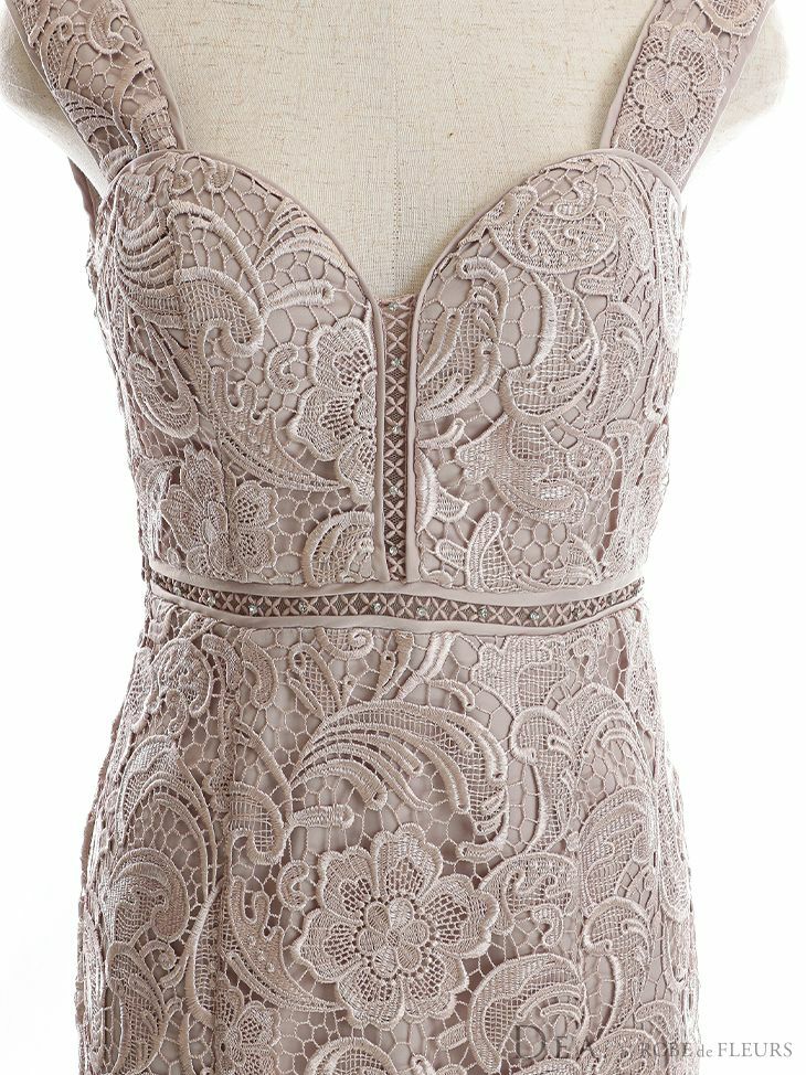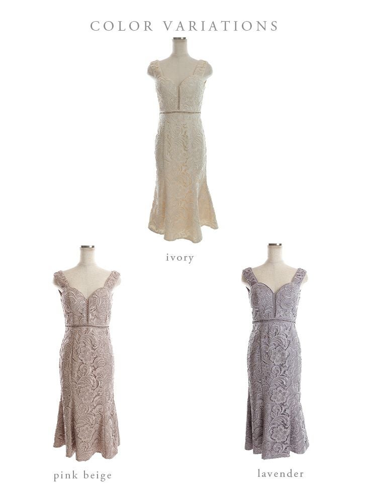 4. [DEA.byROBEdeFLEURS/ディアバイローブドフルール] 高級ケミカルレースハートカットデザインマーメイドノースリーブタイト膝丈ワンピースドレス